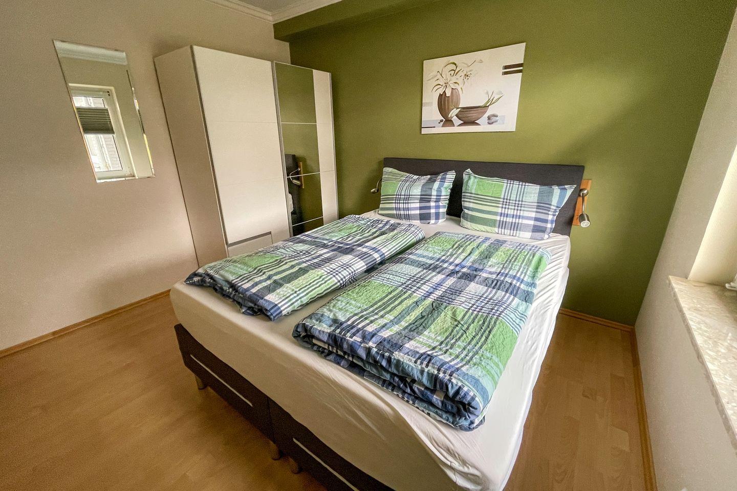 Das modern und funktional eingerichtete Appartement eignet sich aufgrund seiner Aufteilung optimal für bis zu vier Personen. Zur Verfügung steht ein separates Schlafzimmer, das Rückzug und Erholung ermöglicht. Neben dem komfortablen Schlafbereich finden Sie im Wohnzimmer eine zusätzliche Schlafmöglichkeit, ausgestattet mit einem gemütlichen Sofa und ausreichend Sichtschutz an allen Fenstern.