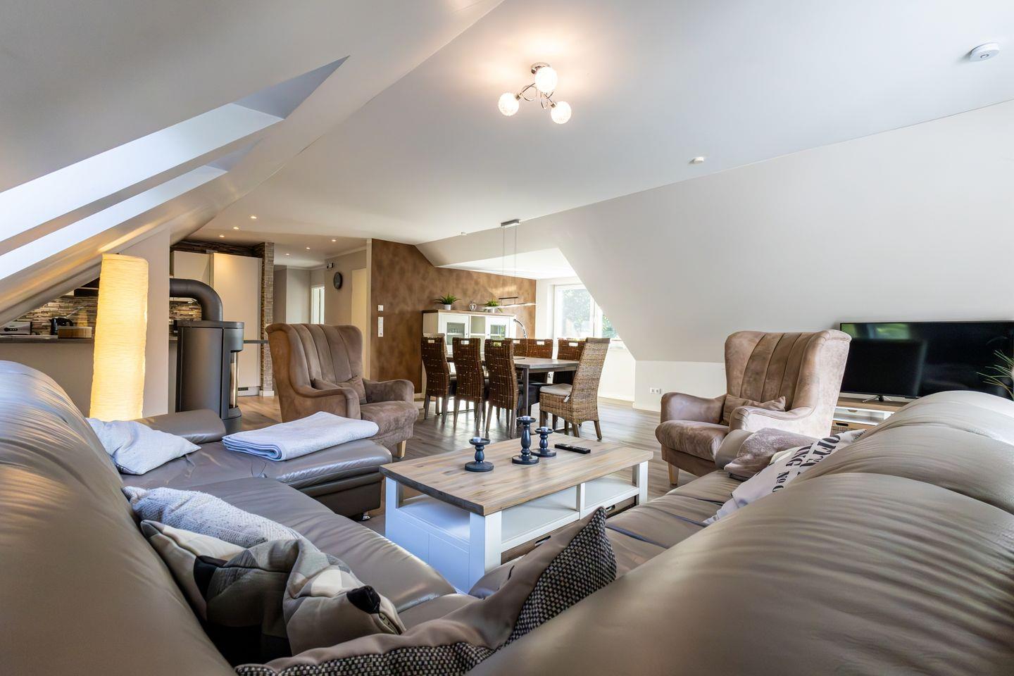 Das Appartement "Heverstroem 5" befindet sich im Obergeschoss des Hauses und ist über eine Treppe zu erreichen. Es bietet Ihnen ein großzügiges und hochwertig ausgestattetes Feriendomizil zum Wohlfühlen. Mit vier separaten Schlafzimmern und zwei modernen Badezimmern eignet sich dieses Appartement ideal für bis zu acht Personen – sowohl für Familien mit Kindern als auch für einen Urlaub mit Freunden.