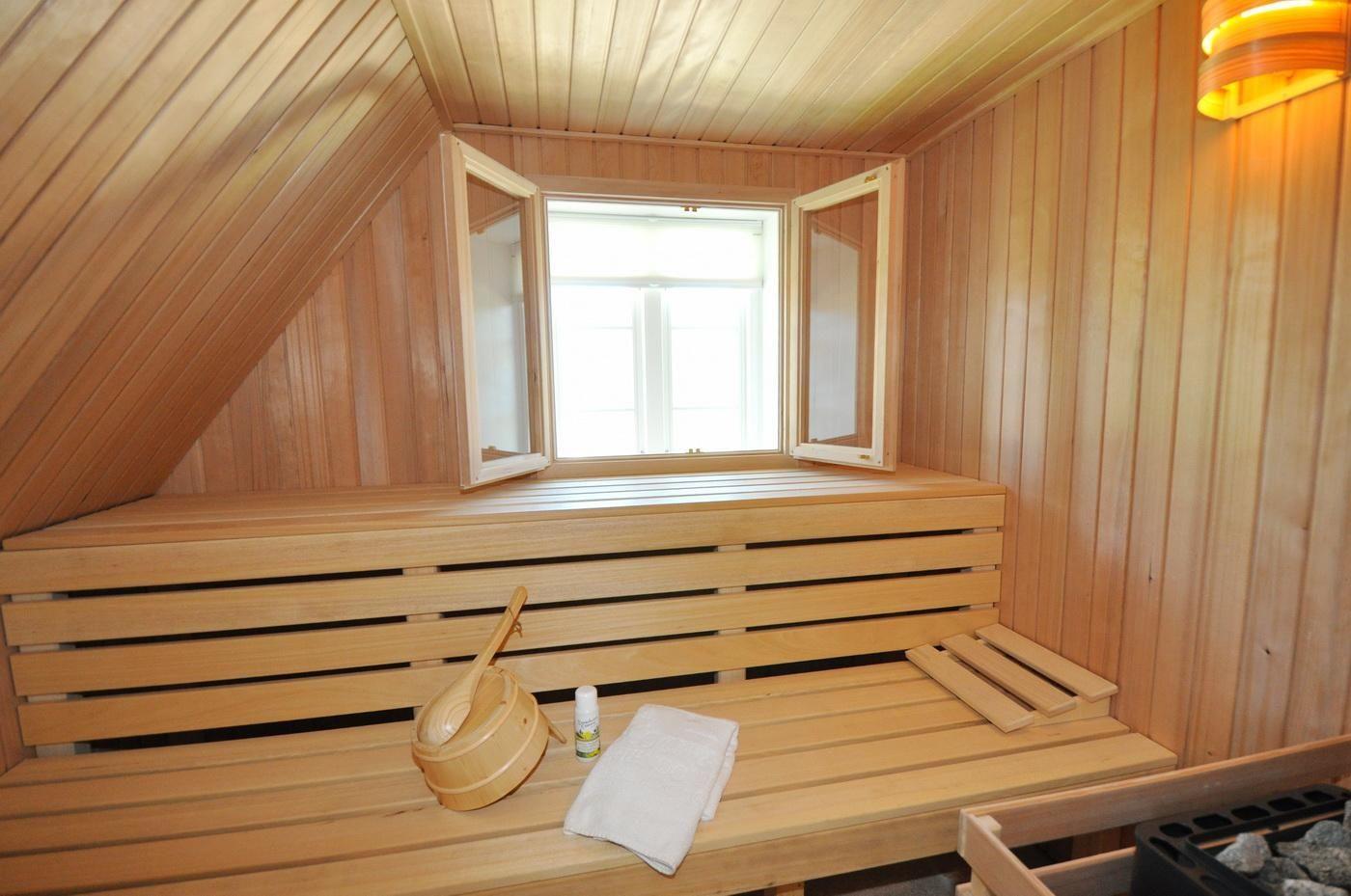 Das Badezimmer des Master-Schlafzimmers verfügt neben einem Doppelwaschtisch zusätzlich über eine Sauna, so dass Sie hier in den Genuss eines privaten Wellness-Bereichs kommen.