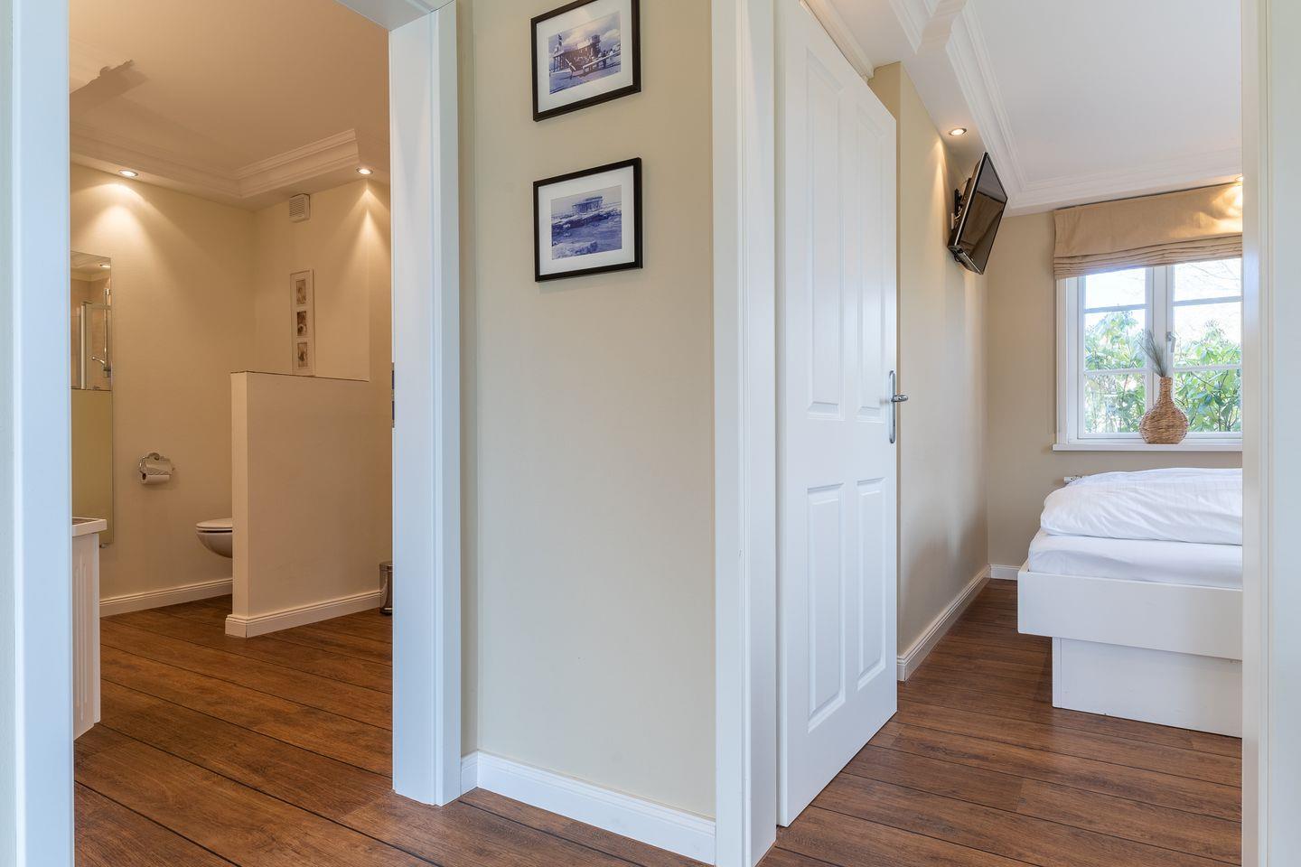 Das wunderschöne Apartment unter Reet wurde mit exklusiven Möbeln ausgestattet und bietet großzügigen Platz für 2 Personen. Das Grundstück mit Stellplatz und einer eigenen Terrassen inklusive Gartenmöbeln und Strandkorb wurde mit hübschen Pflanzen und einem Friesenwall angelegt. Das Apartment befindet sich im Erdgeschoss und verfügt über ca. 45 m² Wohnfläche und teilt sich wie folgt auf: Ein großzügiger Wohnraum mit einer offenen Küche und einem gemütlichen Essbereich. Die Küche ist mit hochwertigen Geräten voll ausgestattet. Ein separates Duschbad bietet jeden Komfort. Im stilvollen Schlafzimmer mit Doppelbett 1,8 x 2,0 m können Sie herrlich entspannen. Mit viel Liebe zum Detail wurde großen Wert auf die Inneneinrichtung gelegt. Das Apartment verfügt über große Fenster und ist somit herrlich lichtdurchflutet.