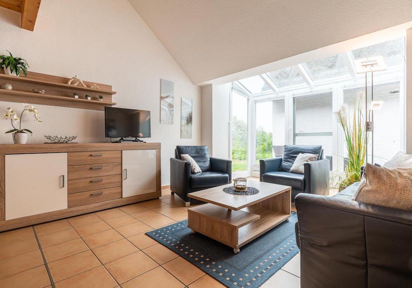 Das wunderschöne Appartement unter Reet wurde mit modernen Möbeln ausgestattet und bietet großzügigen Platz für 3 Personen. Das Grundstück mit Stellplatz wurde mit hübschen Pflanzen angelegt. Auf der Terrasse mit Gartenmöbeln, umgeben von Schafwiesen und Pferdekoppeln, kann man herrlich entspannen und die Ruhe genießen. Zusätzlich hat Ihre Wohnung noch eine weitere sonnige Terrasse im Grünem mit Standkorb und Gartenmöbeln. Das Appartement befindet sich im Erdgeschoss und erstreckt sich über 2 Etagen. Es verfügt über ca. 60 m² Wohnfläche und teilt sich wie folgt auf: Auf der ersten Etage befindet sich ein großzügiger Wohnraum mit einer offenen Küche und einem gemütlichen Essbereich. Die Küche ist voll ausgestattet. Ein separates Duschbad bietet jeden Komfort. Über eine Holztreppe gelangt man zur Schlafgalerie im Dachgeschoss. Das stilvolle Schlafzimmer verfügt über ein 1,8 x 2,0 m Bett. Eine weitere Person kann auf der Schlafcouch 1,4 x 2,0 m im Wohnzimmer entspannen. Kostenlose W-LAN Nutzung.