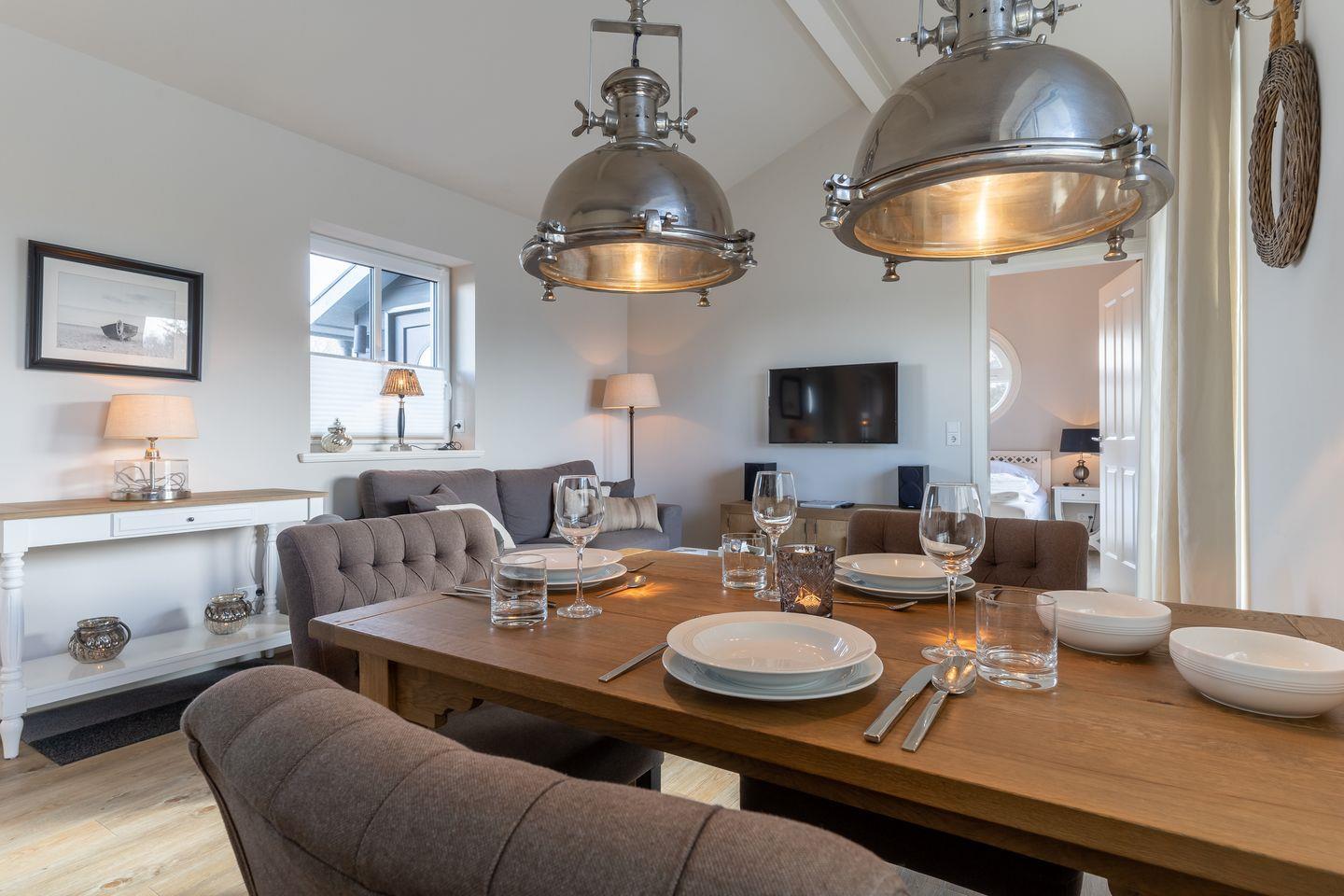 Das großzügige 66m² Penthouse ist mit sehr exclusiven Möbeln eingerichtet. Ein gemütliches Wohnzimmer mit offener Wohnküche laden zum Relaxen ein. Die Küche ist mit hochwertigen Geräten voll ausgestattet. Das Duschbad ist großzügig gestaltet und bieten genügend Platz für Ihre Utensilien. Das Doppelschlafzimmer und Flatscreen TV, sowie das Einzelschlafzimmer sorgen für ruhevolle Erholung.