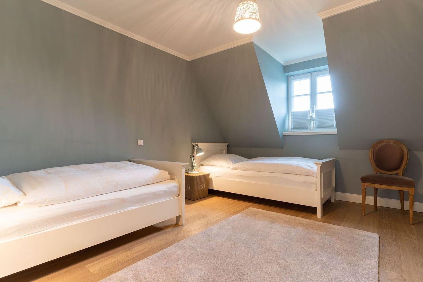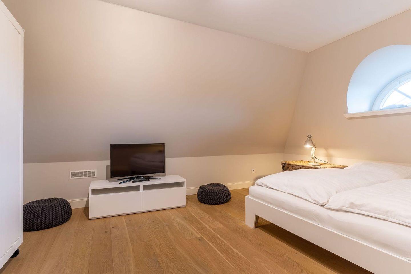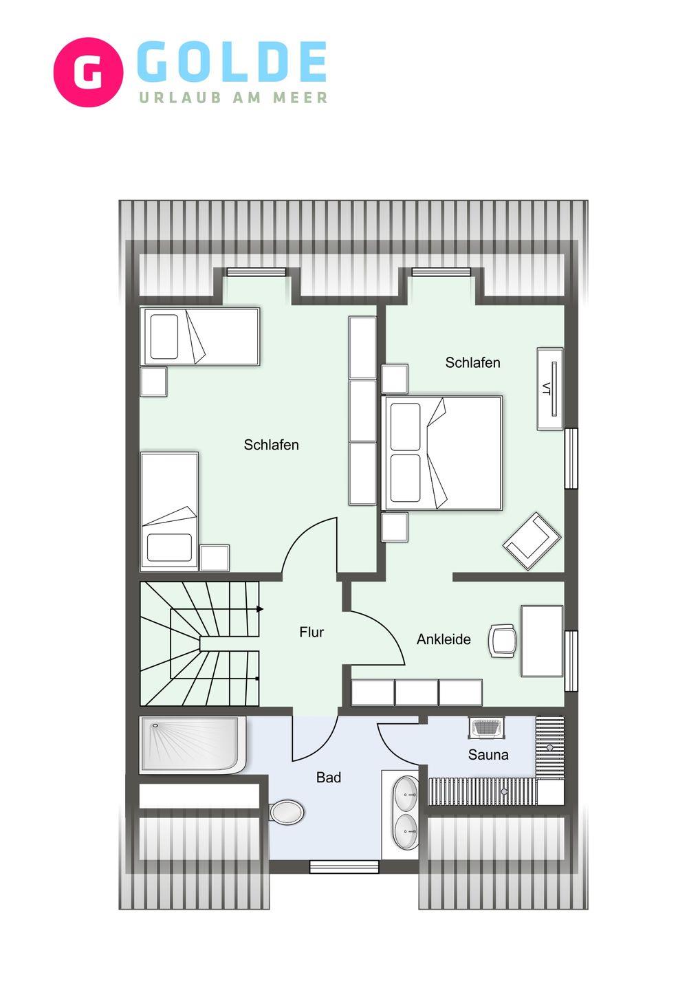 Im Erdgeschoss befinden sich der Wohnraum mit einer offenen, modernen und bestens ausgestatteten Küche, der Flur mit Garderobe, ein Hauswirtschaftsraum und das großzügige Vollbad mit Dusche sowie Badewanne. Der Boden ist mit hochwertigen Fliesen und Parkett ausgelegt. Im Obergeschoss befinden sich zwei Schlafzimmer, weiterhin befindet sich hier ein geräumiges Badezimmer mit Dusche und Sauna. Im großzügigen Dachgeschoss steht Ihnen noch ein weiteres Doppelbett und ein Flatscreen TV zur Verfügung.
