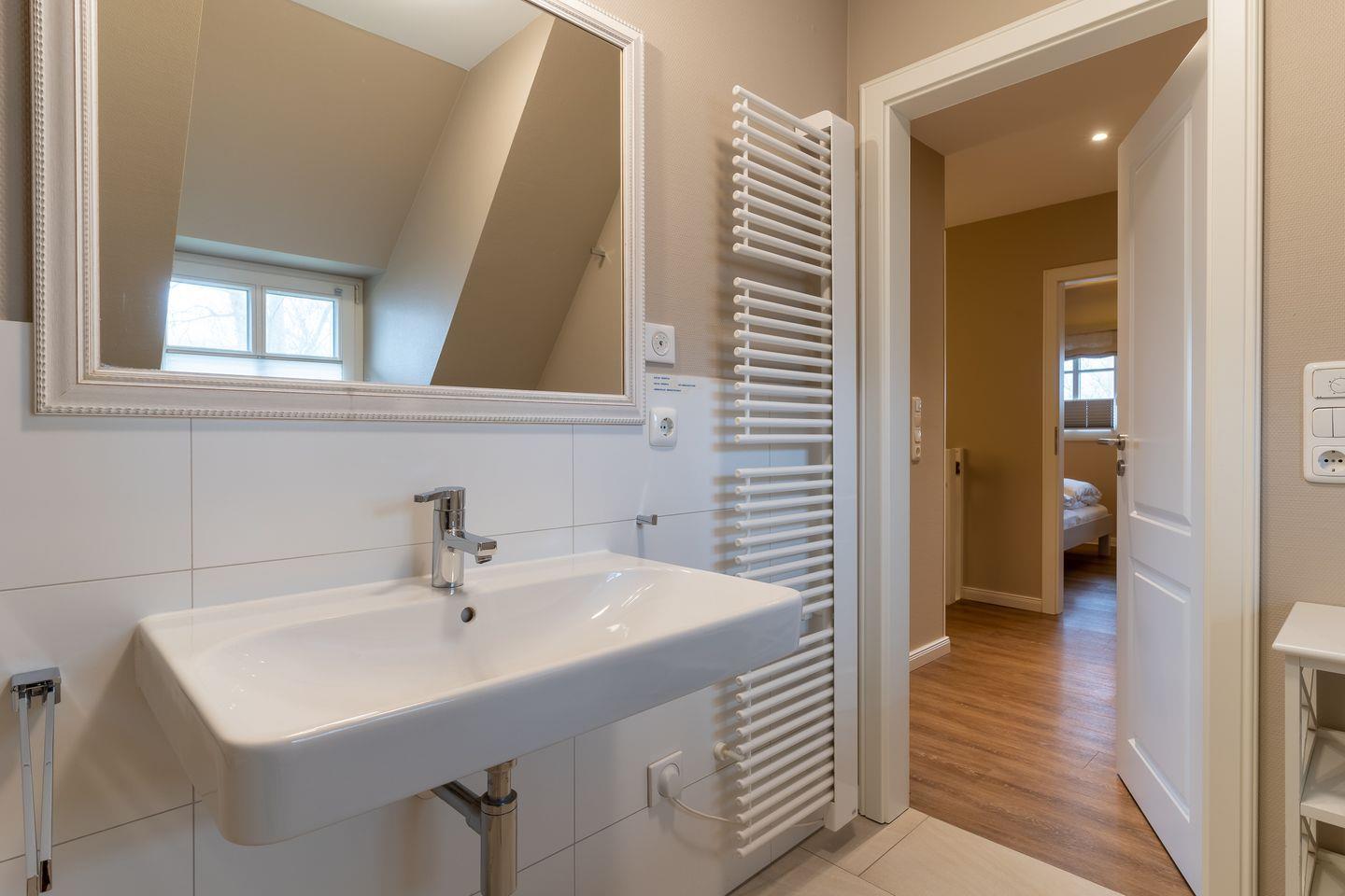 Im Erdgeschoss befindet sich der Wohnraum mit einer offenen Küche und einem gemütlichen Essbereich. Die Küche ist voll ausgestattet mit hochwertigen Geräten. Im Erdgeschoss ist ebenso ein großer Flur mit Garderobe, ein Duschbad und ein Chill-Out-Room mit TV. Wunderbarer Rückzugsort zum Lesen, TV schauen, Spielen oder Chillen. Das Sofa kann zu einem gemütlichen Schlafbett für 2 Personen umgebaut werden. Über eine Holztreppe im Flur gelangt man in das Obergeschoss mit zwei Schlafzimmern. Eines verfügt über ein 180er Bett mit TV und das andere über 2 x 90er Einzelbetten mit hochwertigen Matratzen (diese können auch zusammengeschoben werden). Außerdem ist im Obergeschoss ein Bad mit Badewanne. Beide Bäder verfügen über ein Fenster.