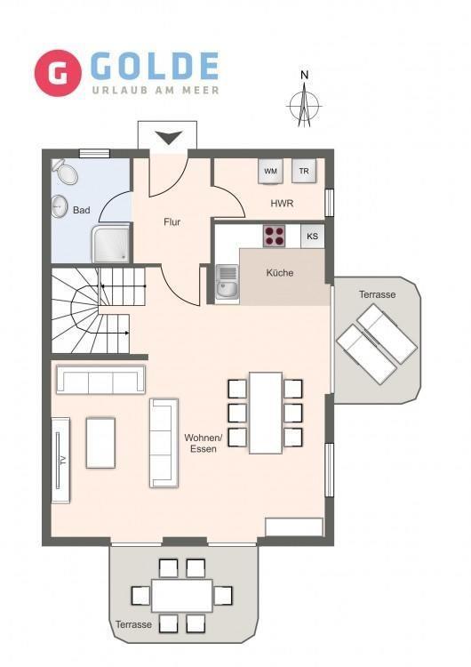 Das Ferienhaus Seepferdchen in St. Peter-Ording bietet 90 qm Wohnfläche, Strandnähe, Garten und zwei Terrassen für erholsame Tage.
