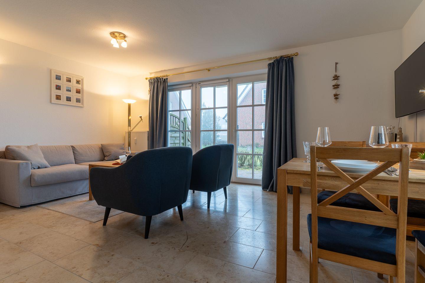 Gemütliche Wohnung in St. Peter-Ording mit Terrasse, Strandnähe und traumhaftem Blick über die Wiesen.