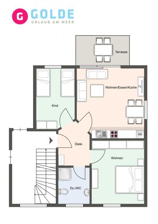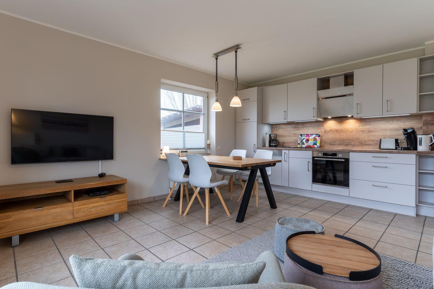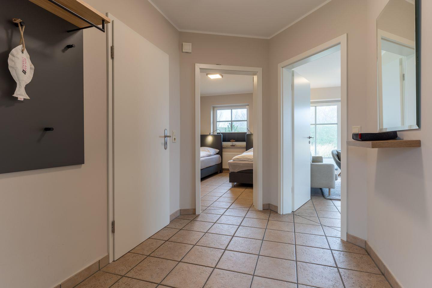 Die 65 qm große Ferienwohnung „Waterkant SPO 2“ befindet sich im Erdgeschoss und ist über den großen Eingangsbereich zu erreichen.