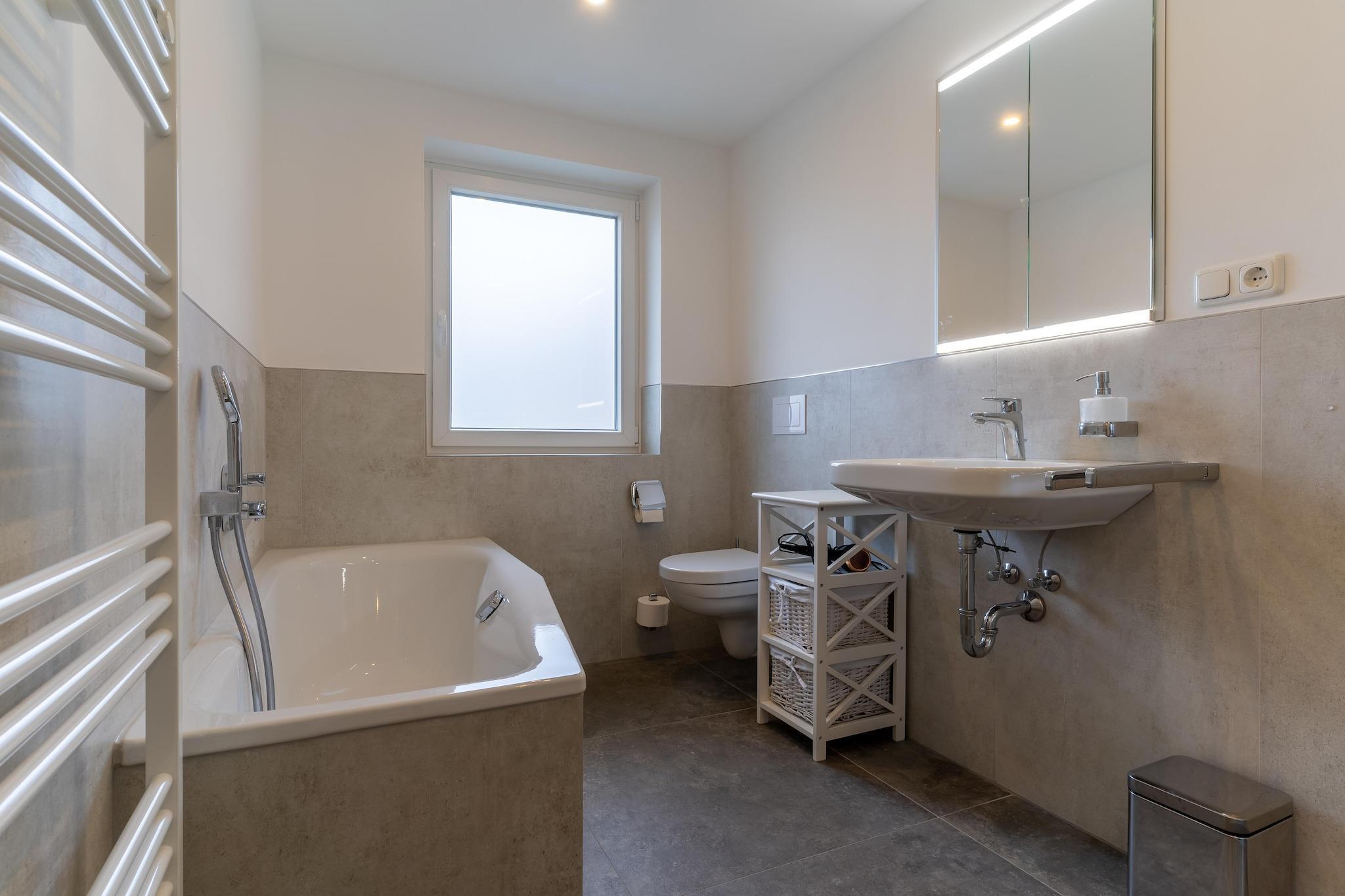 Parterre: (offene Küche(Kochplatte(4 Kochplatten, Ceranfeld), Wasserkocher, Toaster, Dunstabzugshaube, Kaffeemaschine, Backofen, Spülmaschine, Kühlschrank(+ Gefrierfach)), Wohn/Esszimmer(TV(Flatscreen, Satellit, smart TV), Esstisch(4 Personen), Sitzecke, Radio), Schlafzimmer(Doppelbett(180 x 200 cm), Fliegenfenster), Schlafzimmer(Französisches Bett(120 x 200 cm), Fliegenfenster), Badezimmer(Badewanne, Dusche, Waschbecken, Toilette, Föhn), Wirtschaftsraum(Waschmaschine)) Heizung(Gas), Terrasse, Gartenmöbel, Parkplatz, Wäschepaket inklusive
