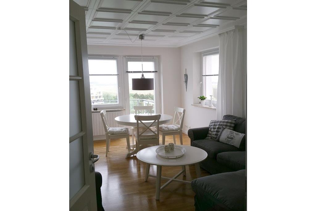 Eine gemütliche, zeitgemäße und zentrumsnahe Ferienwohnung auf 52m² mit 2 Schlafzimmern, Wohnzimmer, Balkon, Einbauküche und großes Badezimmer wartet auf Sie! Die Wohnung ist mit Parkettboden und weißen Fließen ausgestattet. Vom Wohn- und Essbereich haben Sie einen wunderschönen Blick auf das Wasser. Im Haus befinden sich ein Tischtennisraum, eine Sauna (Münzen) sowie ein Wäschekeller mit Waschmaschine und Trockner (Münzen). Für Kinder steht ein großer Spielplatz mit verschiedenen Spielgeräten zur Verfügung. Ein PKW-Stellplatz und ein Abstellraum für bis zu 2 Fahrräder gehört zur Wohnung. Es handelt sich um eine Nichtraucherwohnung. Haustiere sind nicht erlaubt.