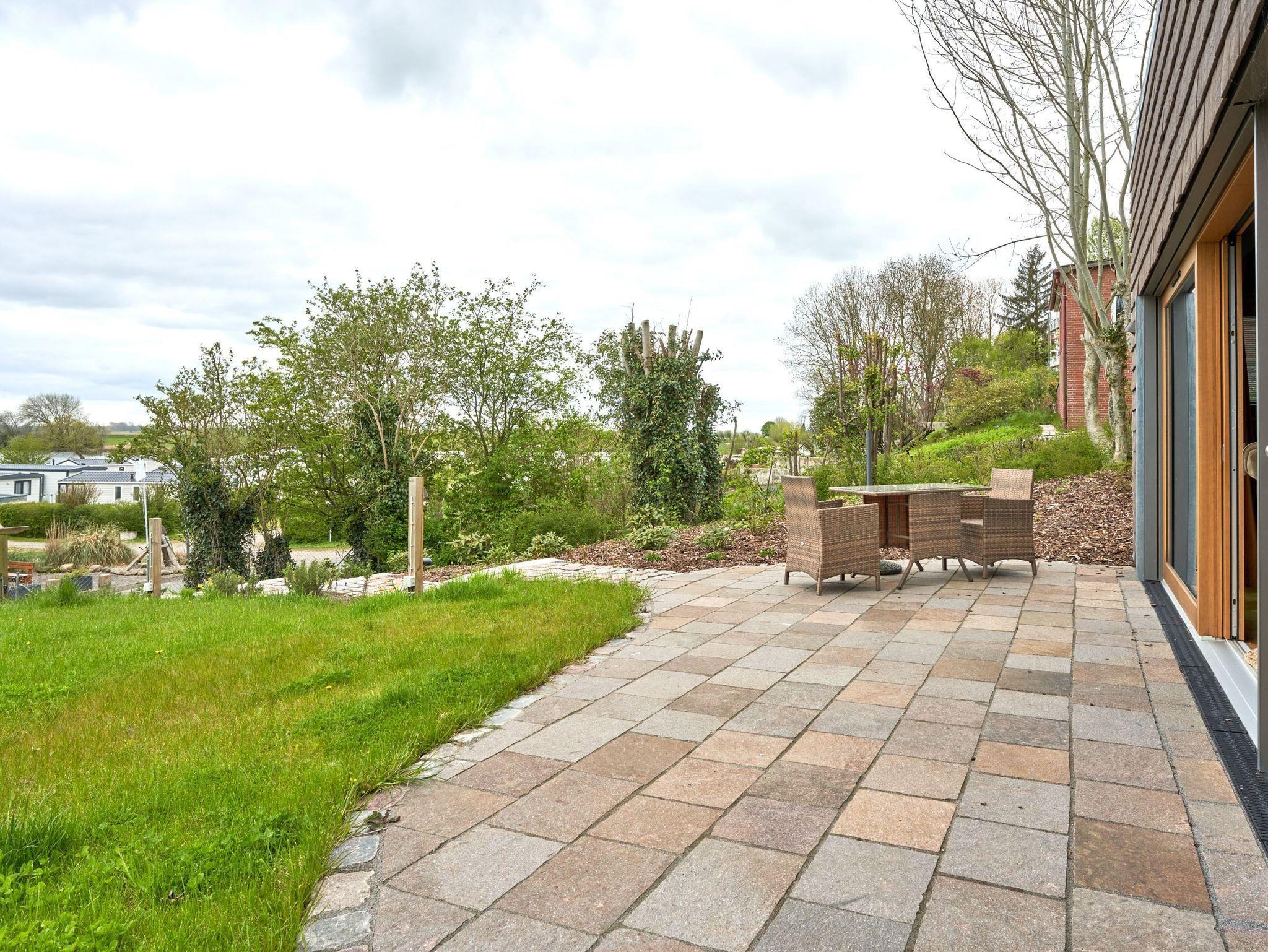 Genießen Sie die Gartengeschosswohnung IDAHO mit Terrasse und Blick auf die Eider in Süderstapel, Schleswig-Holstein.