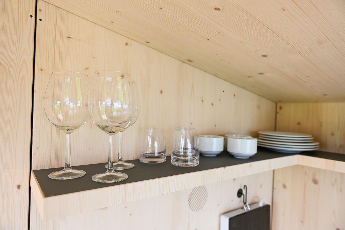 Die neuen Green Tiny Sleep Spaces sind ideal geeignet für Fahrradfahrer, Wanderer und andere Naturliebhaber, die nach einer nachhaltigen und stilvollen Übernachtungsmöglichkeit suchen. Auf fünf Quadratmetern findest du alles, was du für einen Kurzaufenthalt benötigst: ein komfortables Bett für zwei Personen, eine Kochnische mit Waschbecken und ausreichend Staumöglichkeiten. Duschen und Toiletten findest du in den Waschräumen auf dem Campingplatz. Die kleinen Geschwister der Green Tiny Houses vom Typ Pioneer werden ebenfalls in Schleswig-Holstein gebaut und bestehen ausschließlich aus wohngesunden Materialien. Außerdem bieten wir dir eine klimaneutrale Übernachtung dank Kompensation aller anfallenden CO2-Emissionen.