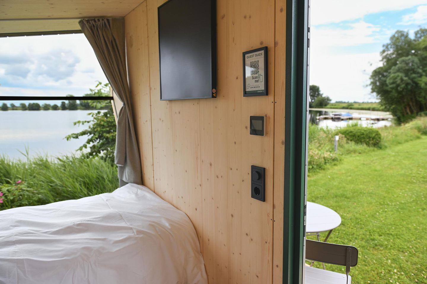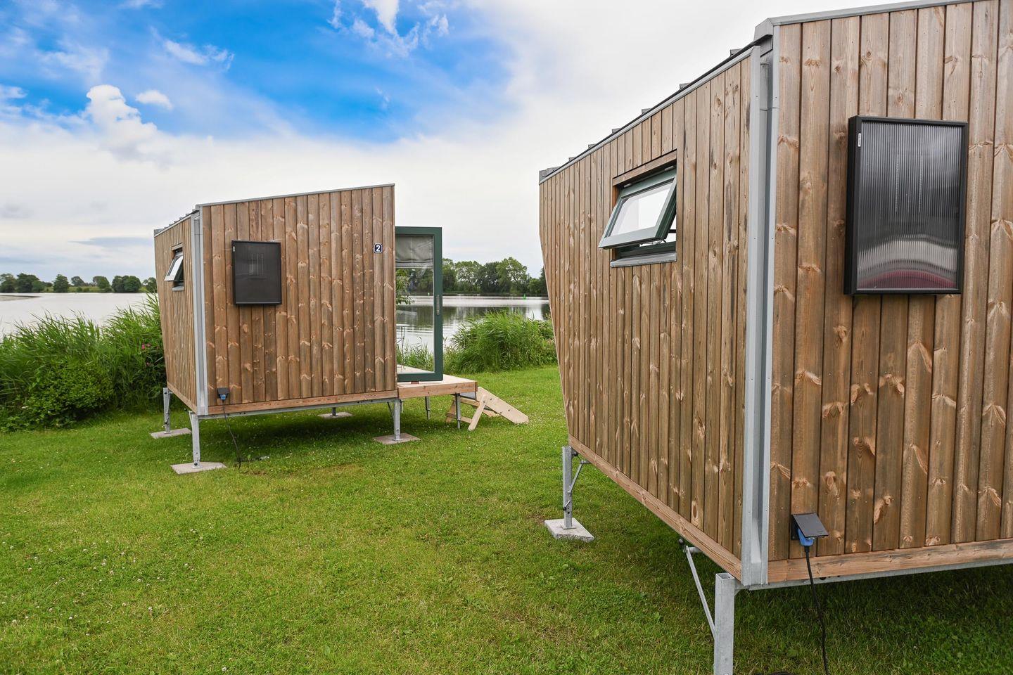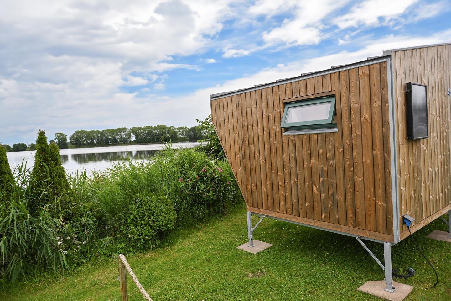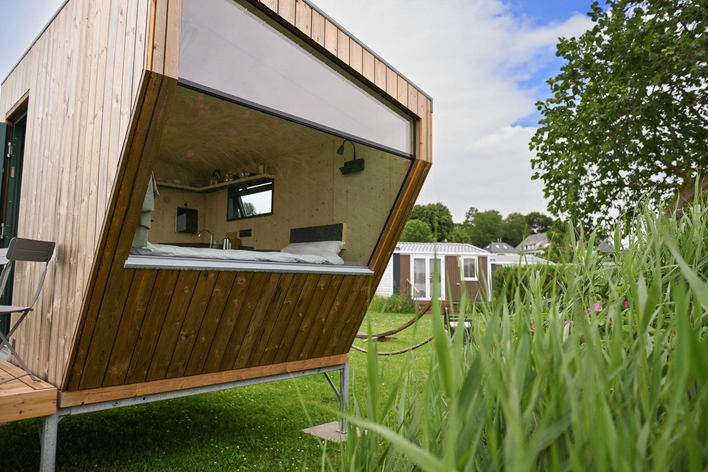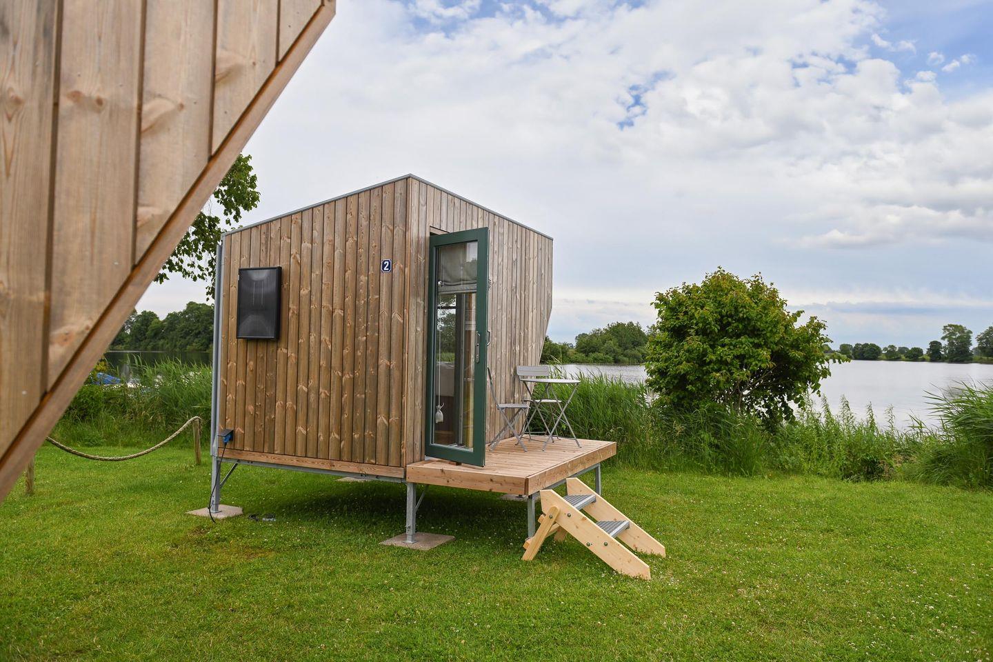 Nachhaltiges Tiny House Sleep Space 2 an der Eider in Süderstapel bietet stilvollen Komfort für Naturliebhaber.