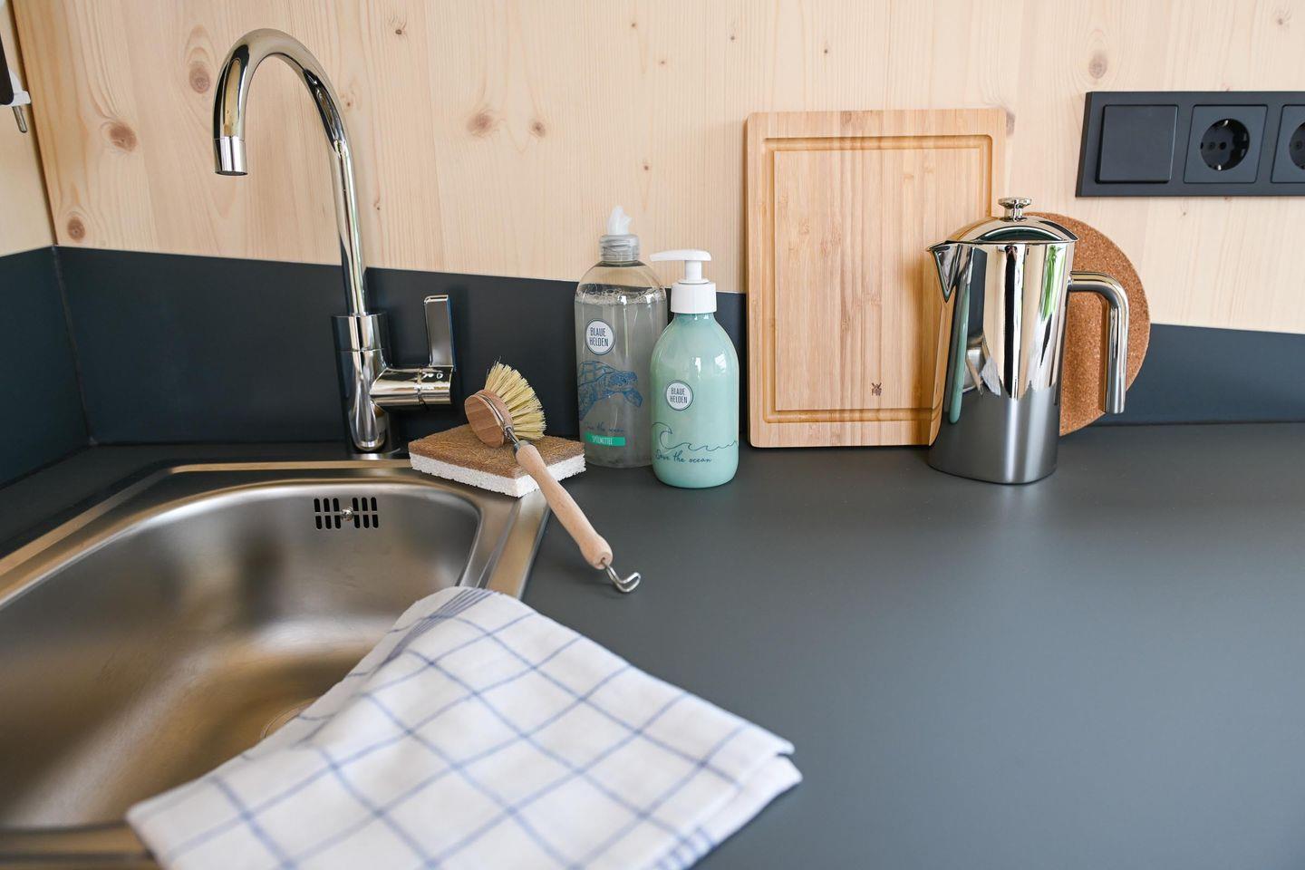 Die neuen Green Tiny Sleep Spaces sind ideal geeignet für Fahrradfahrer, Wanderer und andere Naturliebhaber, die nach einer nachhaltigen und stilvollen Übernachtungsmöglichkeit suchen. Auf fünf Quadratmetern findest du alles, was du für einen Kurzaufenthalt benötigst: ein komfortables Bett für zwei Personen, eine Kochnische mit Waschbecken und ausreichend Staumöglichkeiten. Duschen und Toiletten findest du in den Waschräumen auf dem Campingplatz Süderstapel. Die kleinen Geschwister der Green Tiny Houses vom Typ Pioneer werden ebenfalls in Schleswig-Holstein gebaut und bestehen ausschließlich aus wohngesunden Materialien. Außerdem bieten wir dir eine klimaneutrale Übernachtung dank Kompensation aller anfallenden CO2-Emissionen.