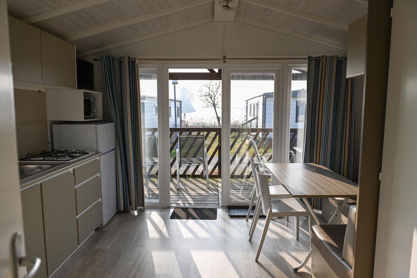 Charmantes Mini-Ferienhaus Eiderlodge 2 an der Eider mit privater Terrasse und Marina, ideal für Natur- und Wassersportliebhaber.