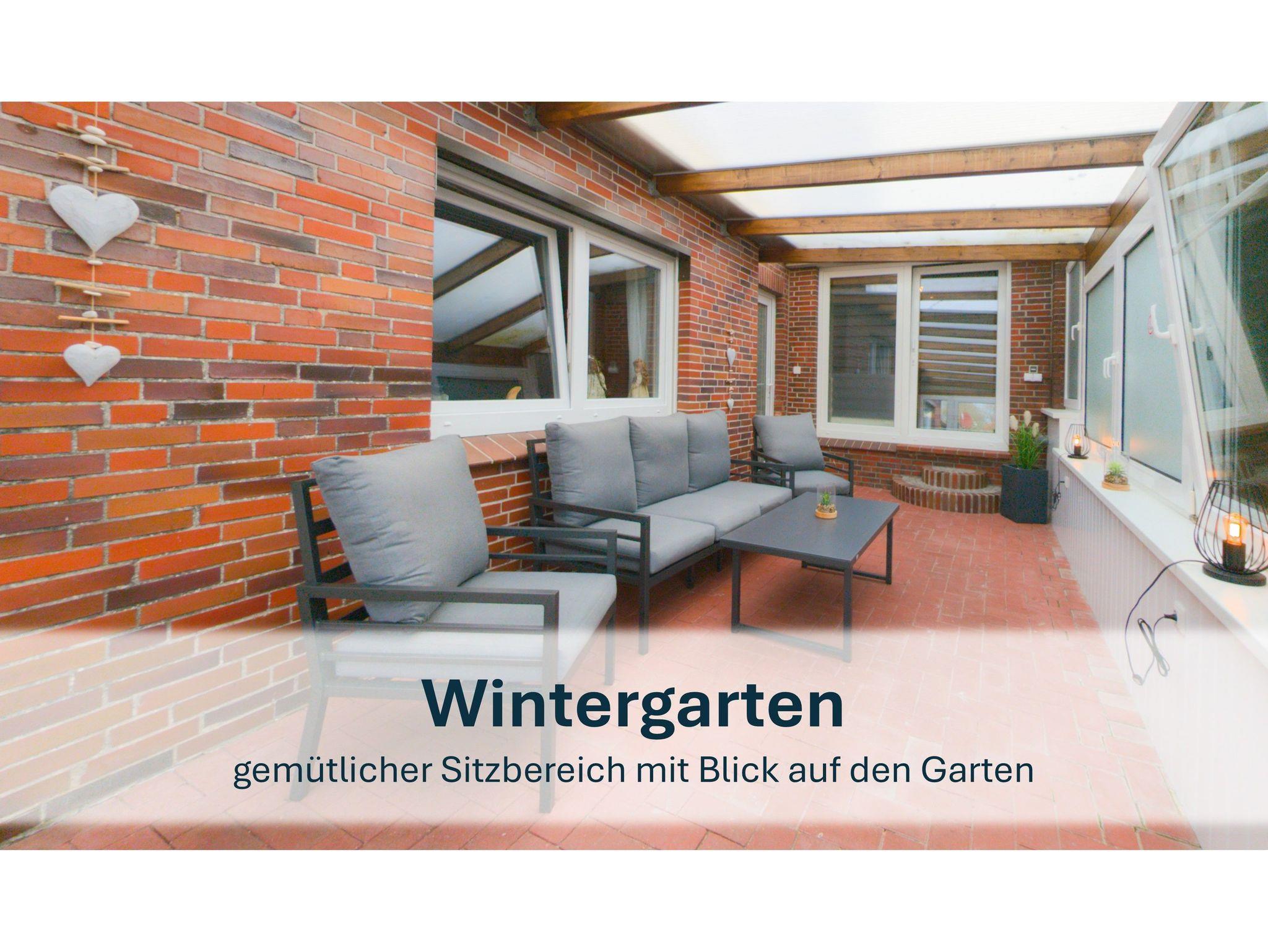 Besonders schön ist der Wintergarten, der mit einem Blick auf den Garten zum Verweilen einlädt - ein perfekter Ort, um die Natur zu genießen und erholsame Stunden zu verbringen. Über die Küche erreichen Sie den Wintergarten.
