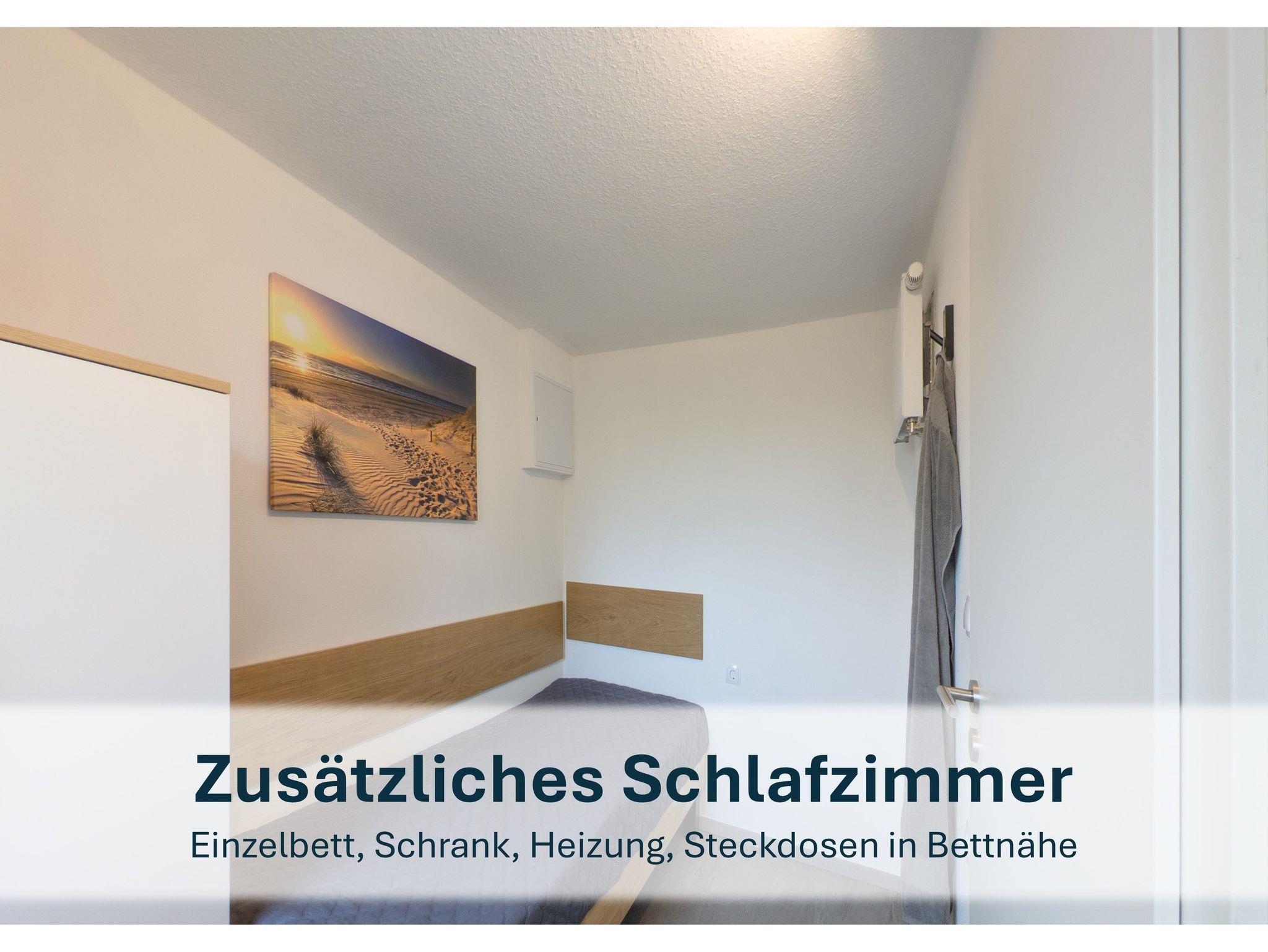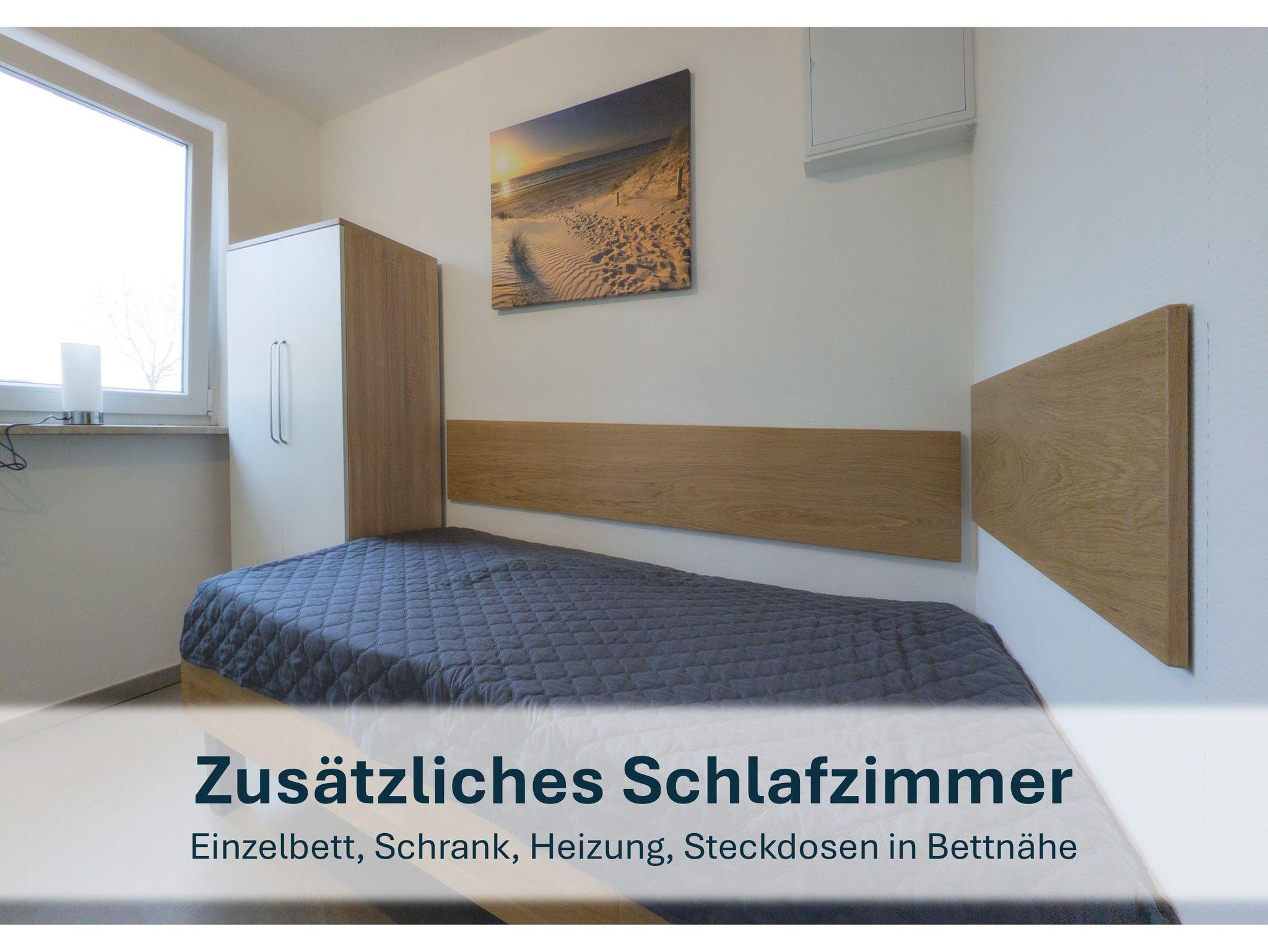 Vom Wohn-/Essbereich gelangen Sie direkt ins erste Schlafzimmer, das mit einem komfortablen Queen-Size-Bett ausgestattet ist. Das zweite Schlafzimmer bietet ein gemütliches Einzelbett, ideal für eine erholsame Nachtruhe.