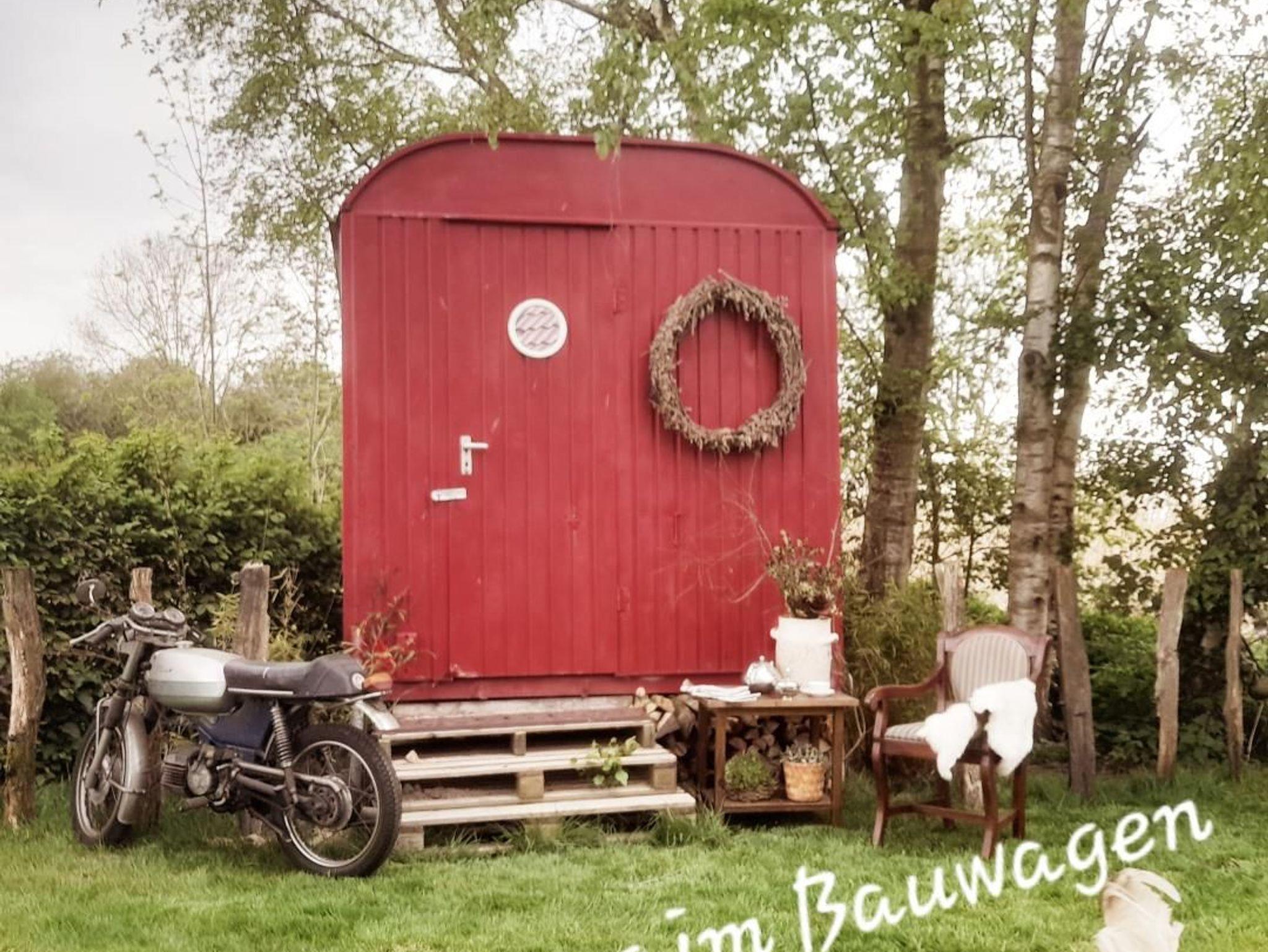 Gemütlicher Bauwagen mit Garten und Outdoor-Dusche