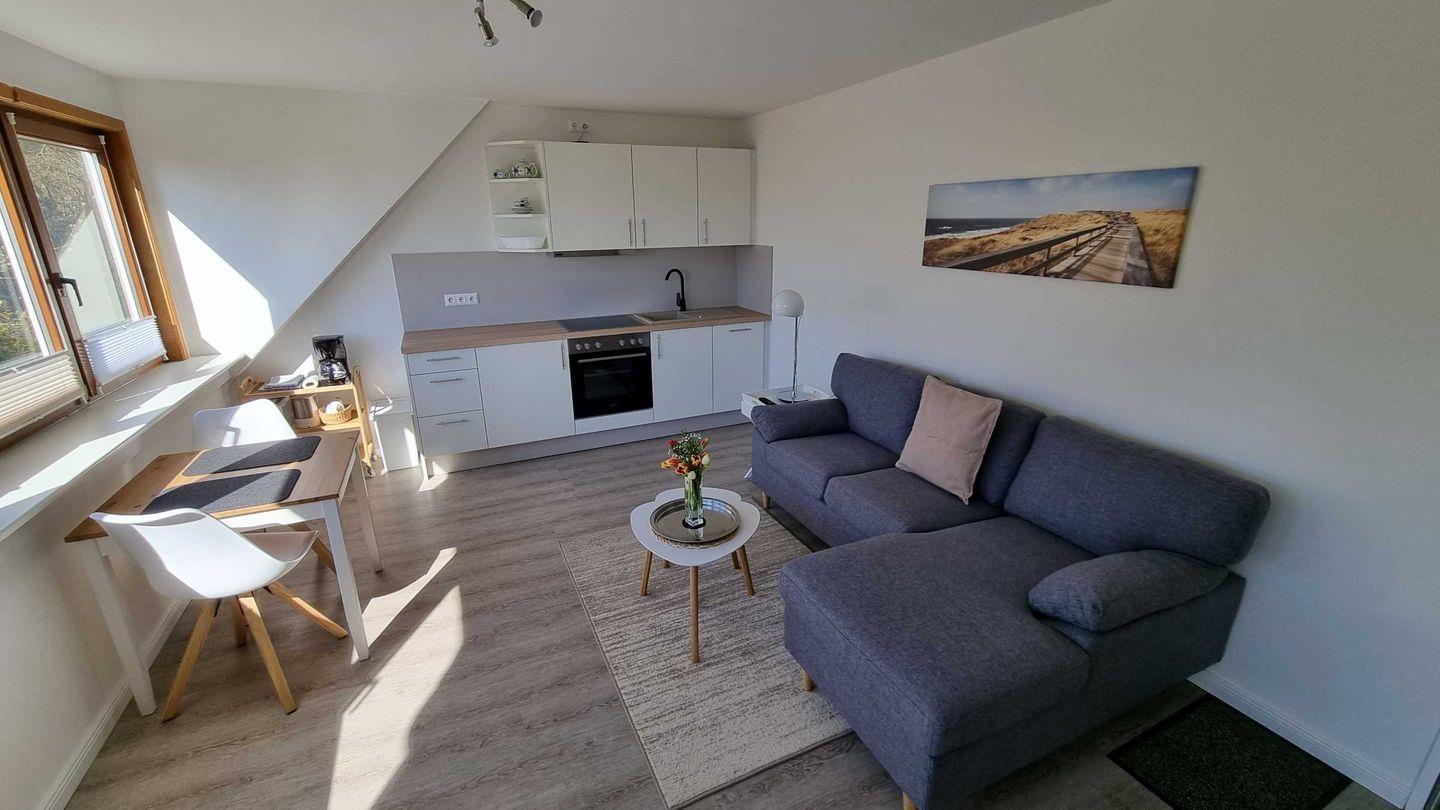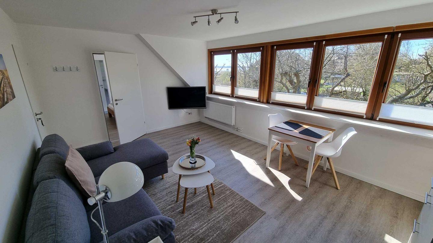 Neu renovierte Ferienwohnung mit direktem Wattblick auf Amrum, ideal für ruhige Tage zu zweit.