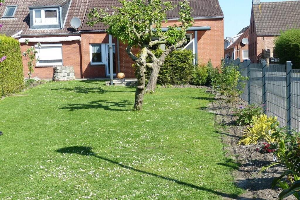 Ruhiges, frisch renoviertes Ferienhaus mit Blick auf den schiefen Turm in Ostfriesland.