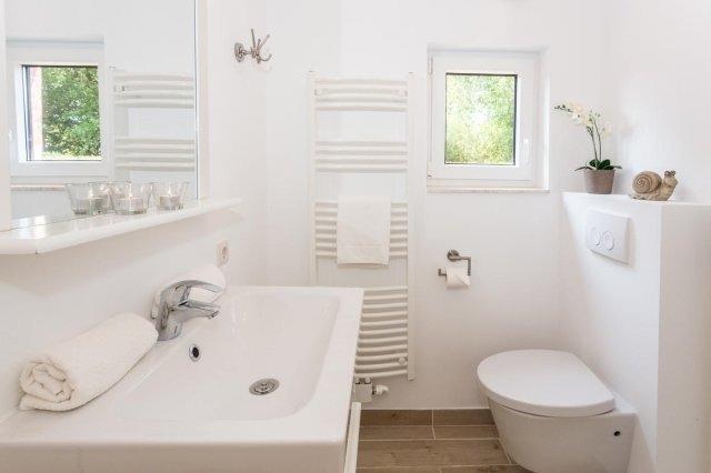 In der zu einem gemütlichen Wohnraum umgebauten Garage befindet sich im Badezimmer ein Entlüfter, weil sich aus unseren Erfahrungen heraus gezeigt hat, dass die unterstützende Maßnahme zu einem besseren Raumklima führt. Zuvor hatten wir eine Gebrauchsanweisung in der Wohnung zum ordnungsgemäßen Lüften (Stoßlüften und Heizen). Leider hat dies nicht funktioniert. Nachts können Sie das Gerät gerne ausschalten.