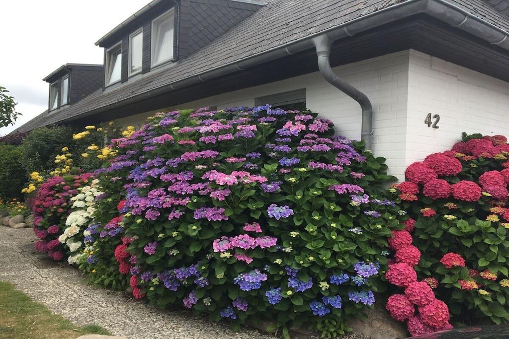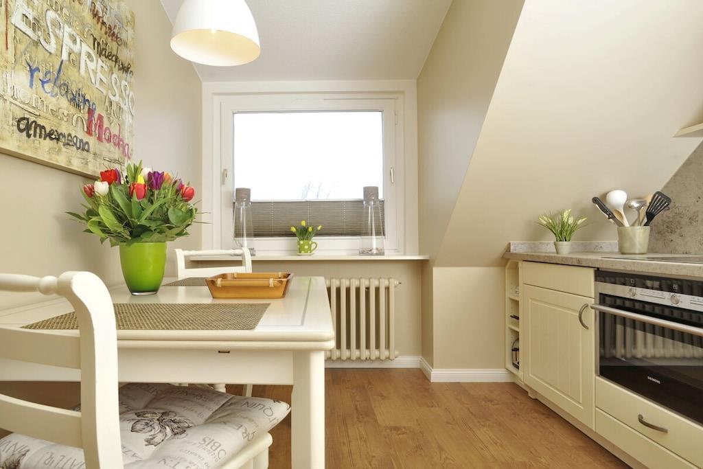 Genießen Sie Ihren Urlaub in dieser sehr großzügigen 2-Zimmer-Wohnung auf einer Ebene im Obergeschoss. Diese lichtdurchflutete Obergeschosswohnung ist mit viel Liebe zum Detail eingerichtet und bietet reichlich Platz für 2 Personen. Das Wohnzimmer verfügt neben einem Esstisch mit 4 Stühlen, über ein gemütliches Sofa und 2 Sessel. Neben Kabel Sat-TV mit Flatscreen und DVD, HiFi-Anlage, Telefon, verfügt die Wohnung selbstverständlich über kostenloses W-LAN. Die neue Küche hat eine Spülmaschine, Ceranfeld, Mikrowelle, Kühlschrank mit Gefrierfach und ist mit allen erforderlichen Elektrogeräten ausgestattet. Des Weiteren befindet sich hier ein weiterer Tisch mit 2 Stühlen. Das Schlafzimmer bietet mit TV, ausreichenden Schränken, sowie hochwertigen Matratzen einen erholsamen Schlaf. Zusätzlich steht Ihnen ein Safe zur Verfügung. Das neue Badezimmer verfügt über eine Dusche, Waschbecken und WC sowie einen Fön. Im Garten steht Ihnen eine schöne Terrasse mit Gartenmöbeln und Strandkorb zur Verfügung. Im Haus stehen eine Waschmaschine und ein Wäschetrockner sowie Bügelbrett und Bügeleisen zur Verfügung.