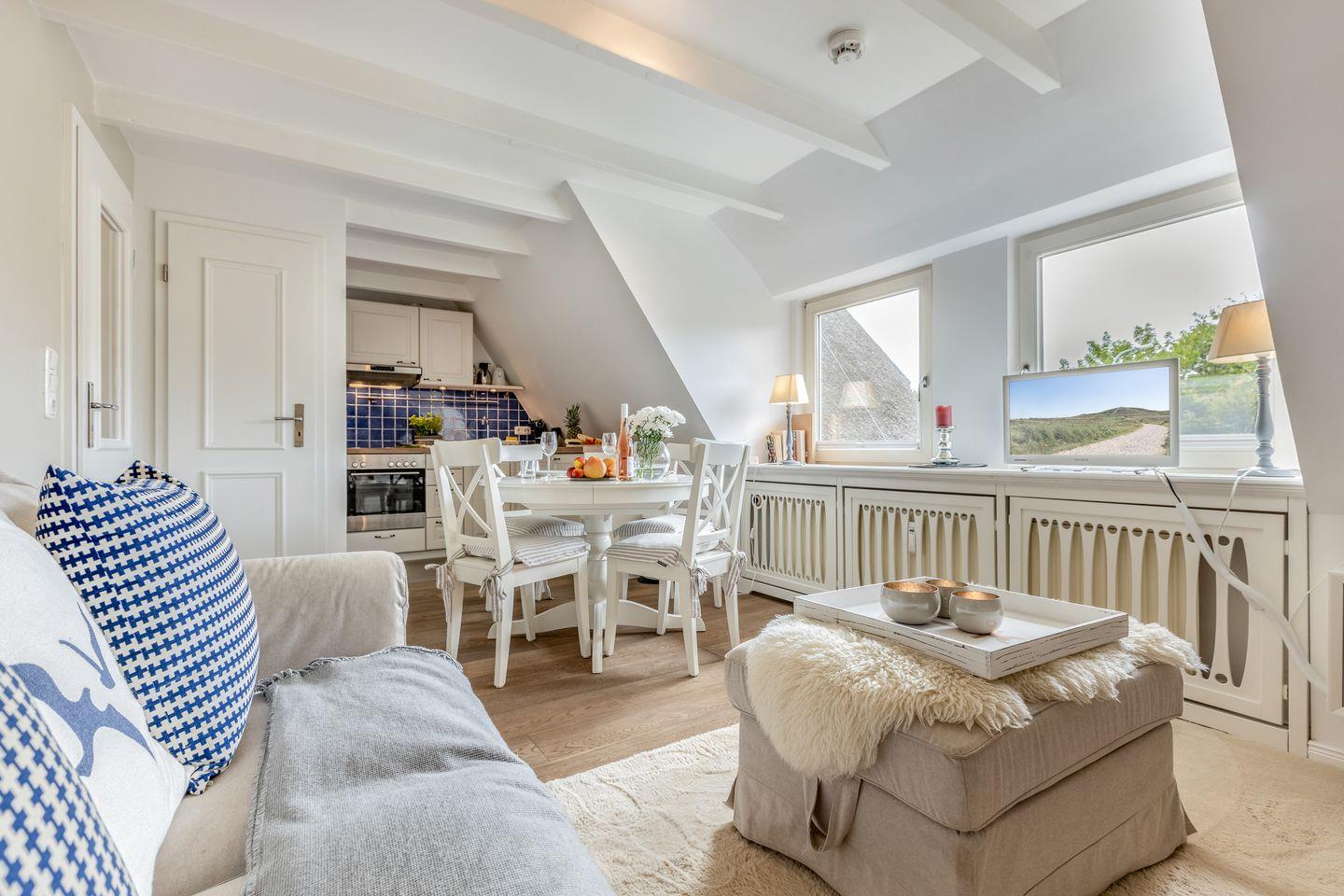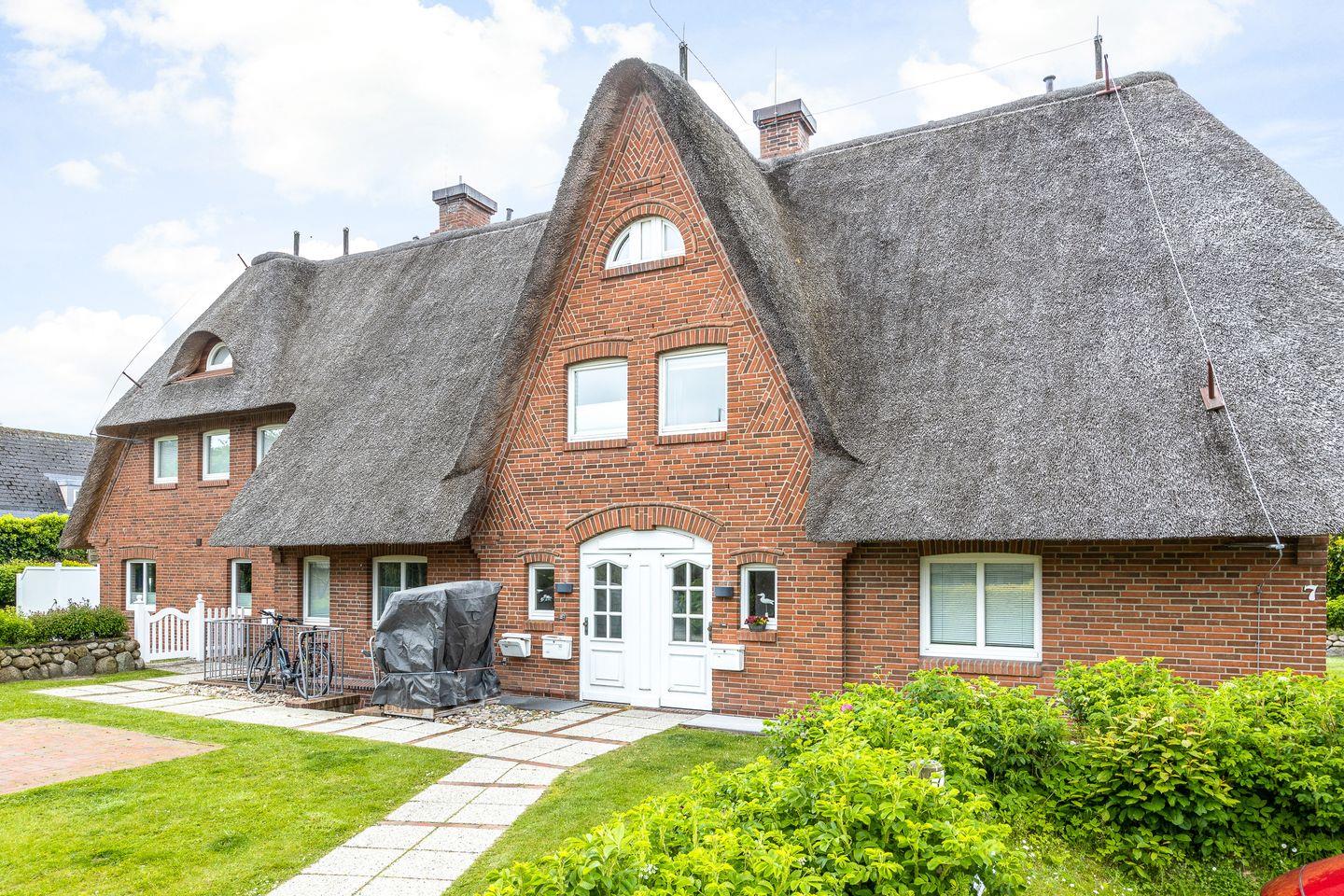 Komfortable Maisonette-Ferienwohnung Mareyke mit Reetdach, Gemeinschaftsgarten und modernem Komfort in Tinnum auf Sylt.