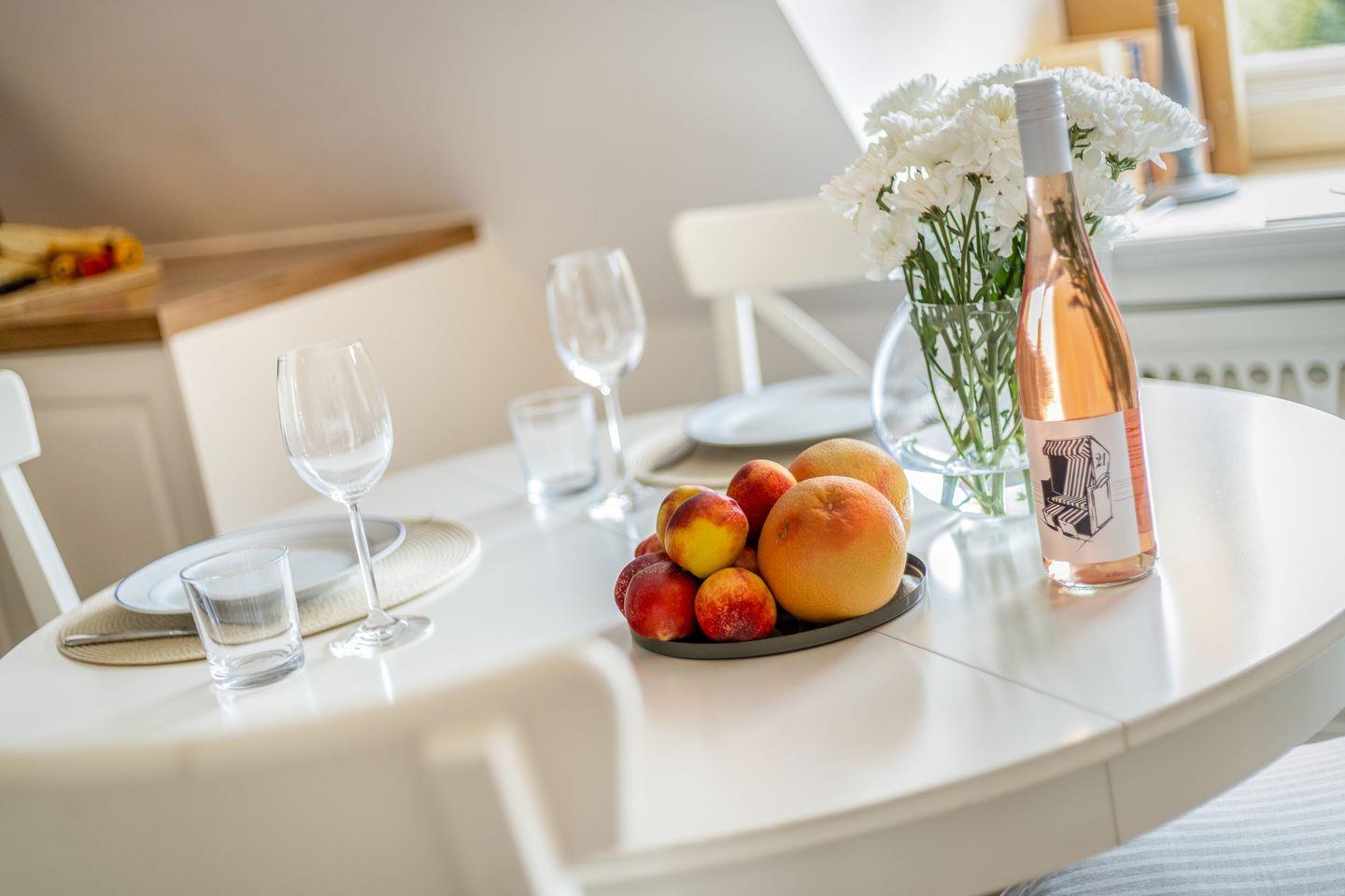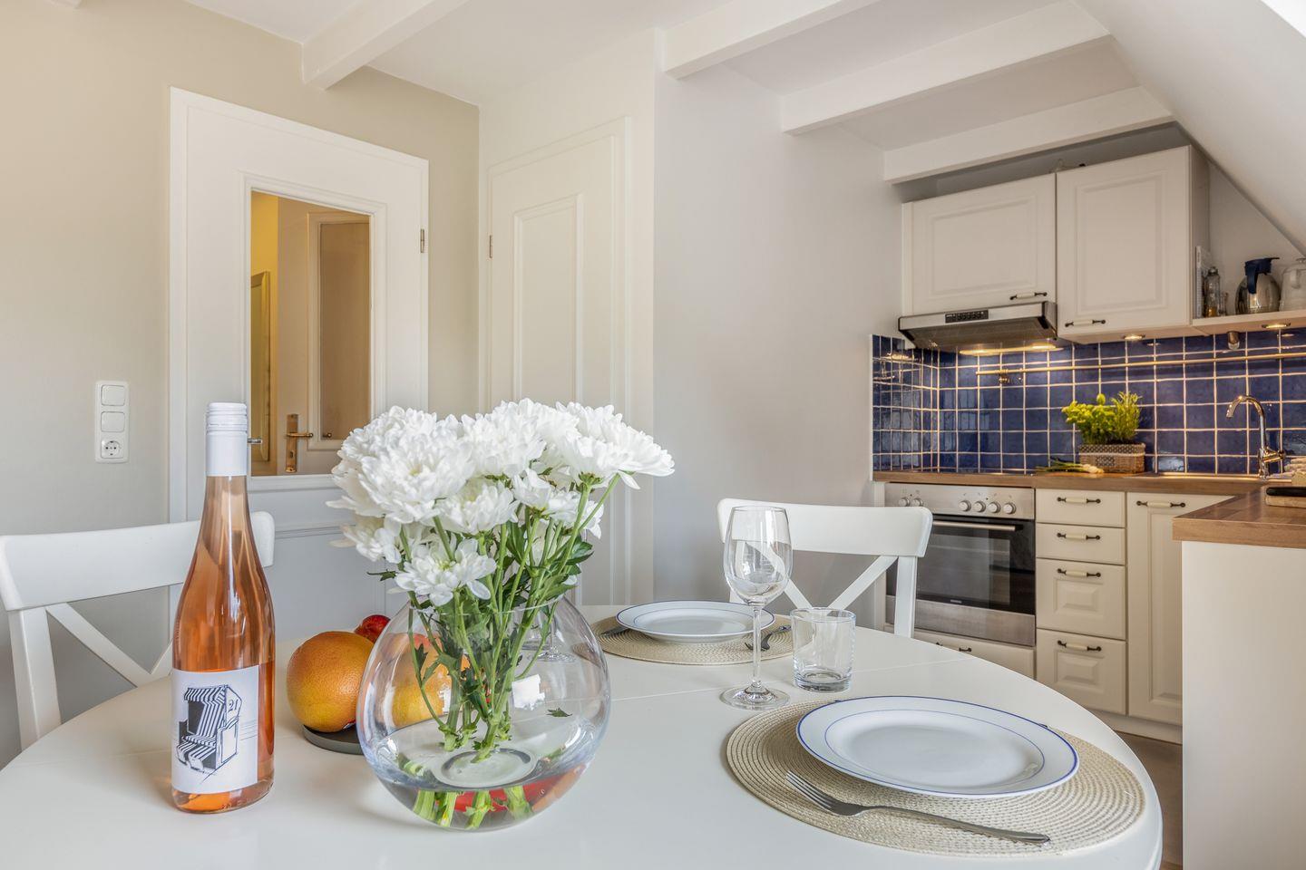 Unsere schöne Maisonette-Ferienwohnung Mareyke befindet sich im Reethof Sylt im ruhigen Ortsteil Tinnum, am Ende einer wenig befahrenen Sackgasse. Hier finden bis zu 4 Personen alles, was Sie für einen entspannten Urlaub benötigen. Im lichtdurchfluteten Wohn/-und Essbereich verbringen Sie gesellige Stunden auf der gemütlichen Sofalandschaft oder am Esstisch, direkt am Fenster. Die angrenzende offene Küche ist komplett ausgestattet und macht somit die Selbstversorgung im Urlaub zum Kinderspiel. Das modern gestaltete Tageslichtbad verfügt über eine ebenerdige Dusche. Eines der Schlafzimmer befindet sich auf der gleichen Etage, wobei das andere in der 2. Etage untergebracht ist und ein eigenes kleines Reich bildet. Beide Schlafräume sind mit komfortablen Doppelbetten ausgestattet und bieten genügend Stauraum für Ihre Garderobe. Genießen Sie Ihre Sonnenstunden im großen, von Friesenwällen umgebenen, Gemeinschaftsgarten im eigenen Strandkorb. Freuen Sie sich auf Ruhe und Wohlfühlambiente.
