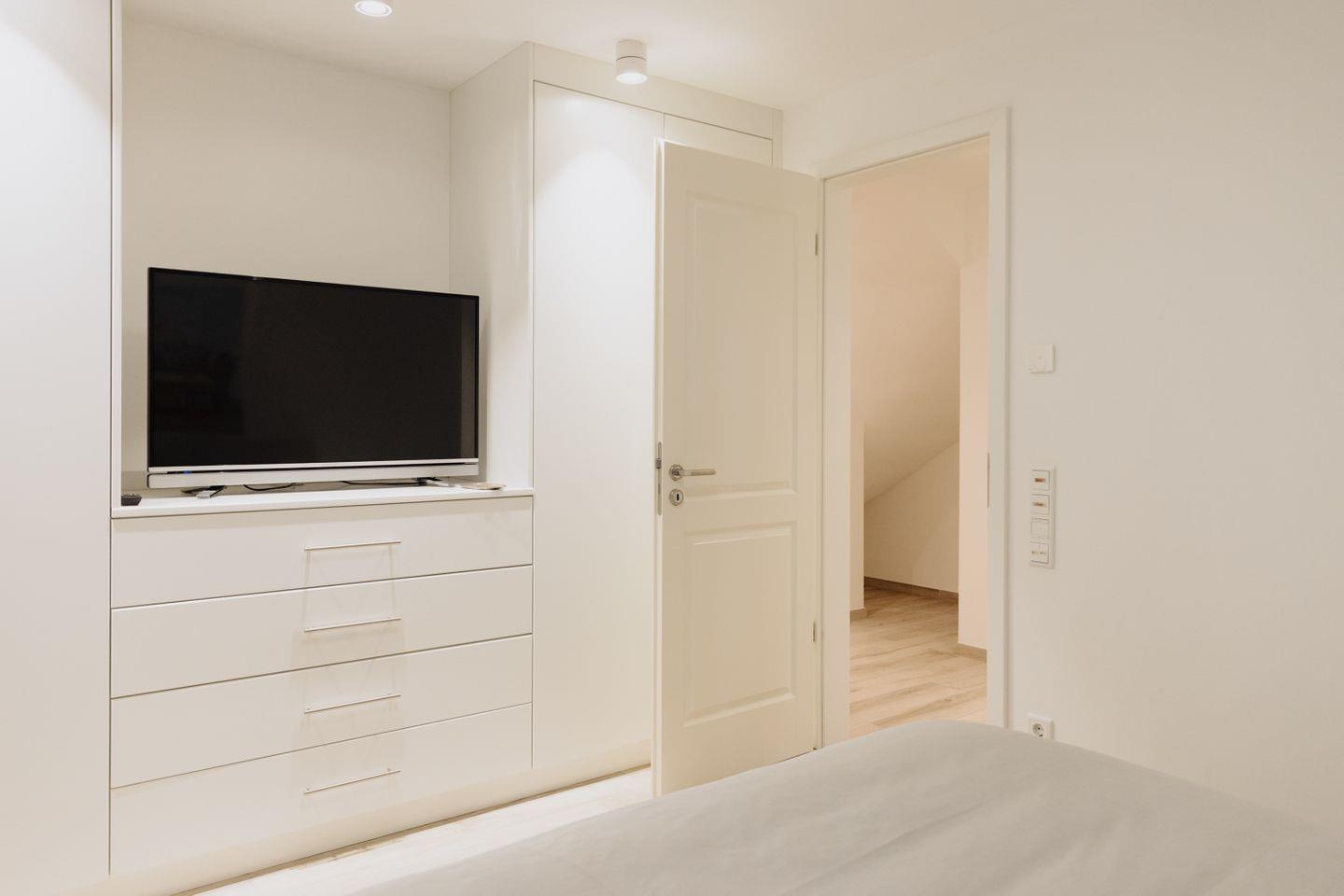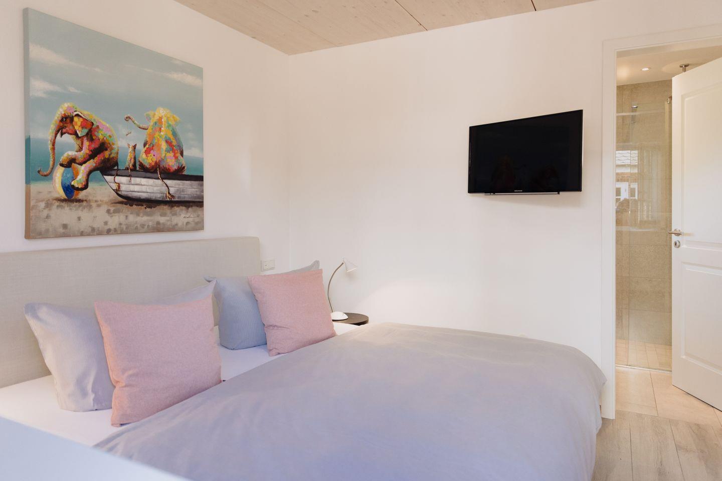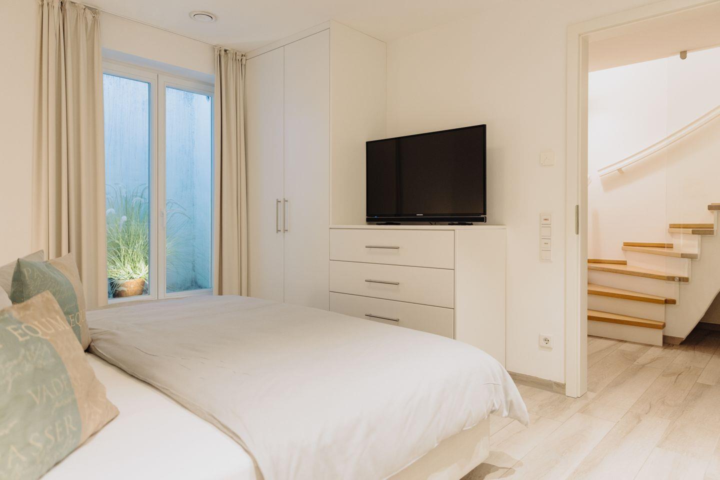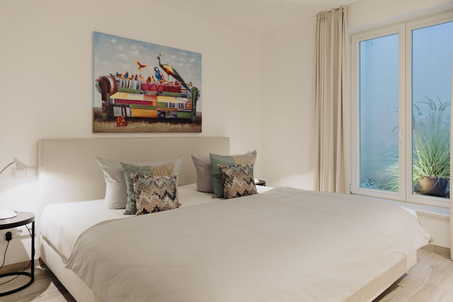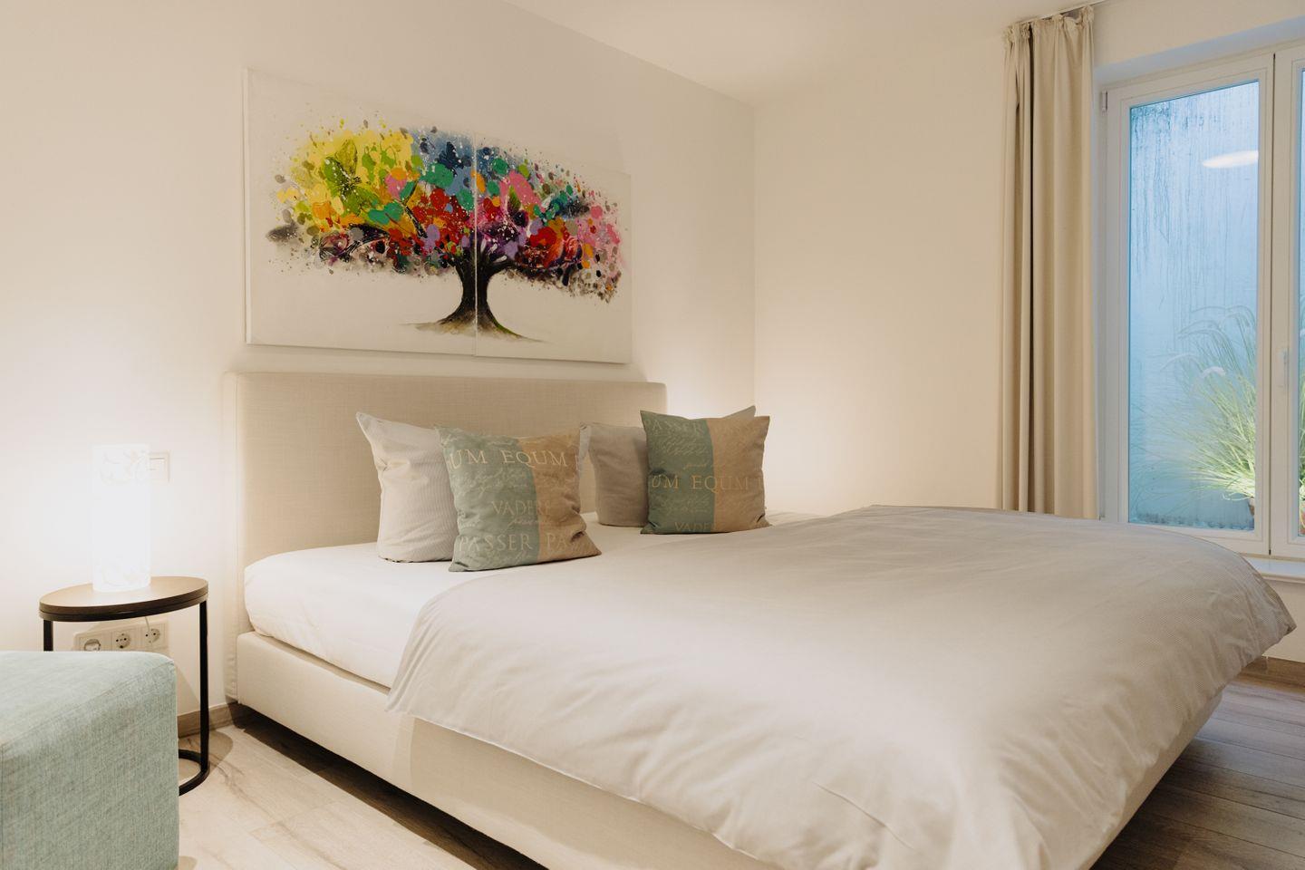 Drei geräumige Schlafzimmer mit komfortablen Boxspringbetten garantieren erholsame Nächte. Besonders exklusiv: ein Schlafzimmer verfügt über ein eigenes Bad en Suite. Zwei weitere Schlafzimmer im Souterrain begeistern durch helle Atmosphäre dank großzügiger Fenster.