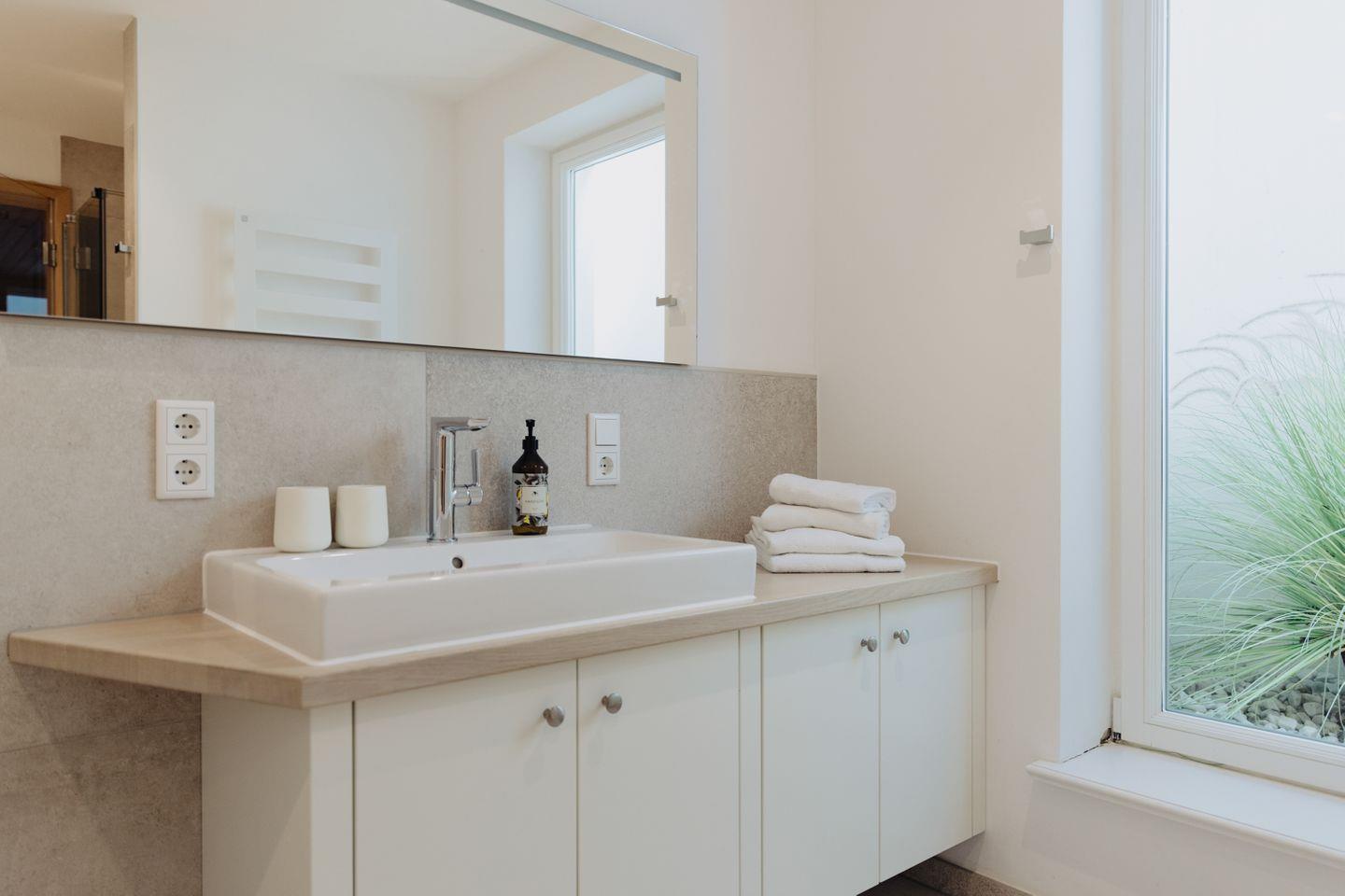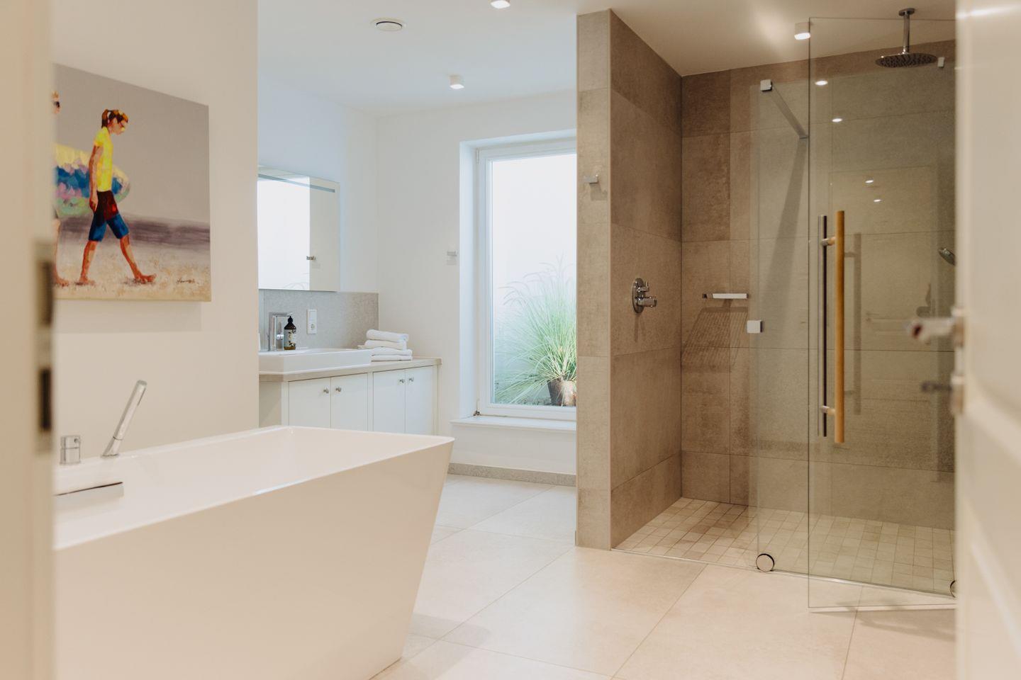 Highlight der Wohnung ist Ihre private Wellness-Oase mit Sauna, Badewanne und Raindance-Dusche – ideal für entspannende Wohlfühlmomente nach einem aktiven Inseltag.