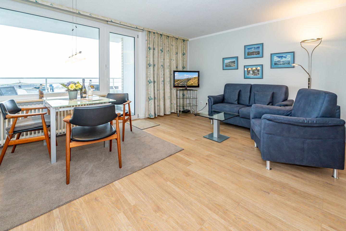 Diese charmante Ferienwohnung bietet einen beeindruckenden Meerblick. Mit einer voll ausgestatteten Küche, gemütlichem kombinierten Wohn- und Schlafbereich und Balkon ist diese Ferienwohnung ideal für Ihren Sylt Urlaub.