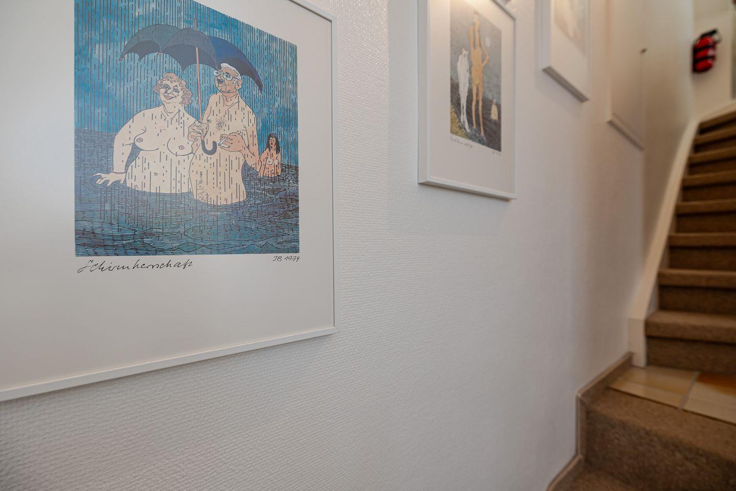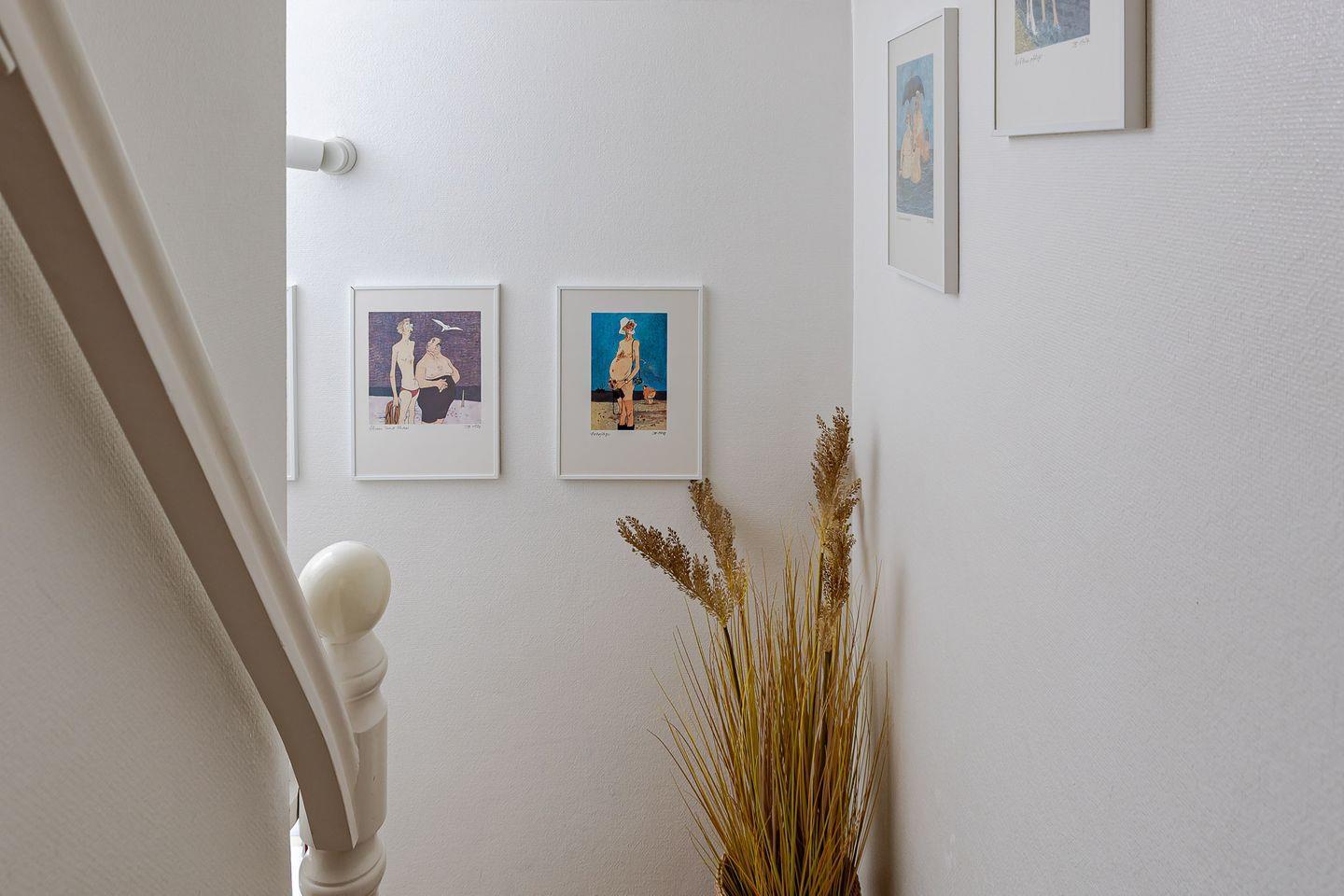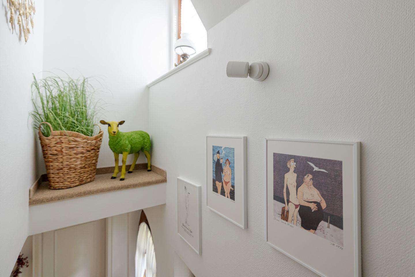 Schon im Erdgeschoss zeigt sich, warum dieses Haus den Namen „Friesenherz“ trägt. Der helle Wohn- und Küchenbereich öffnet sich direkt zur Terrasse und dem großzügigen Garten – ein grüner Rückzugsort, der im Sommer zum lebendigen Zentrum des Hauses wird. Frühstück zwischen Rosen, lange Nachmittage im eigenen Strandkorb, Grillabende mit Familie und Freunden oder ein Glas Wein in der Abendsonne: Dieser Außenbereich ist gemacht für Erinnerungen.