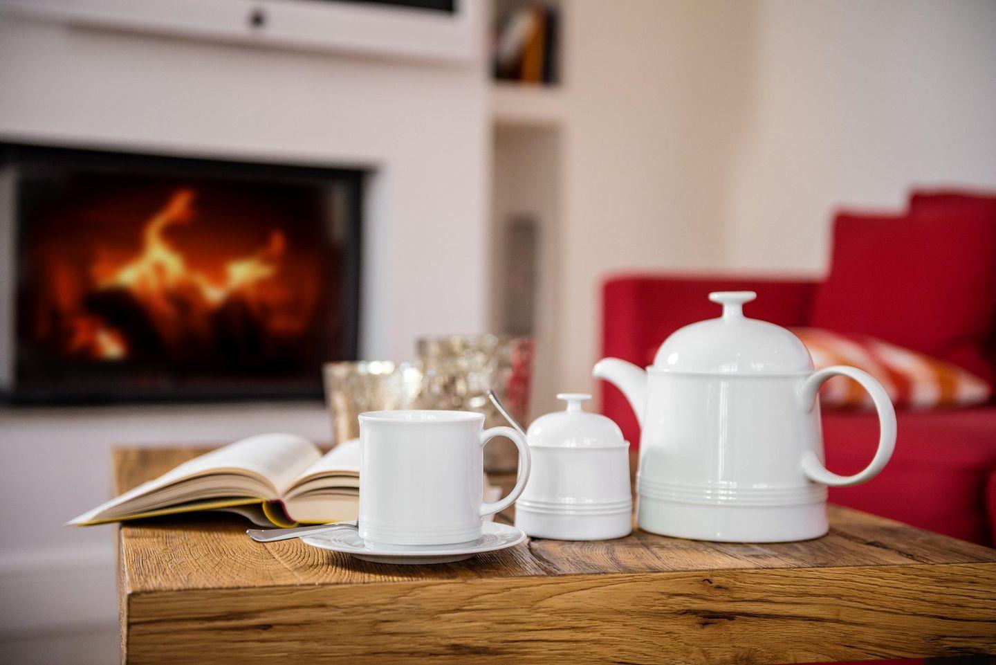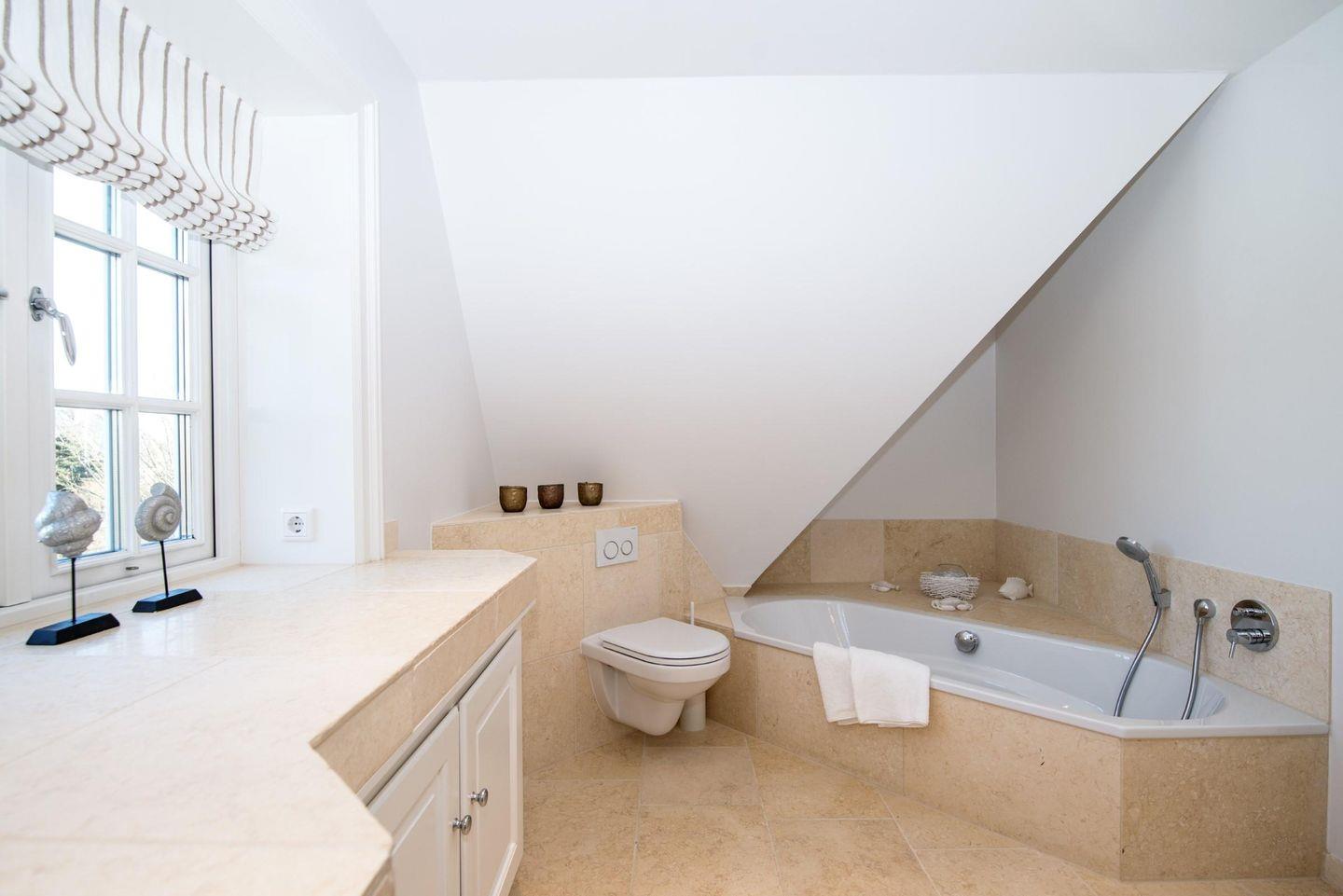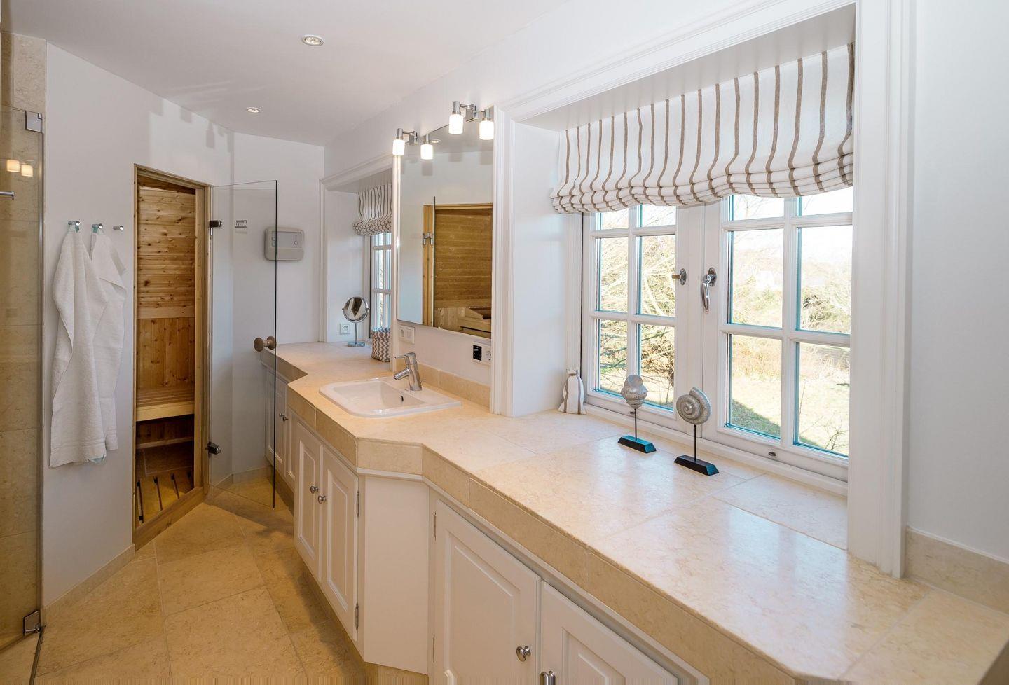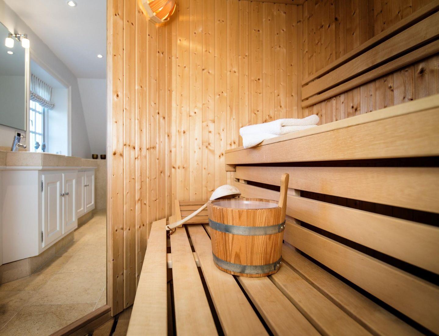 Luxuriöse Doppelhaushälfte unter Reet in Morsum mit großzügigem Garten, Sauna und Kamin für entspannte Urlaubstage auf Sylt.