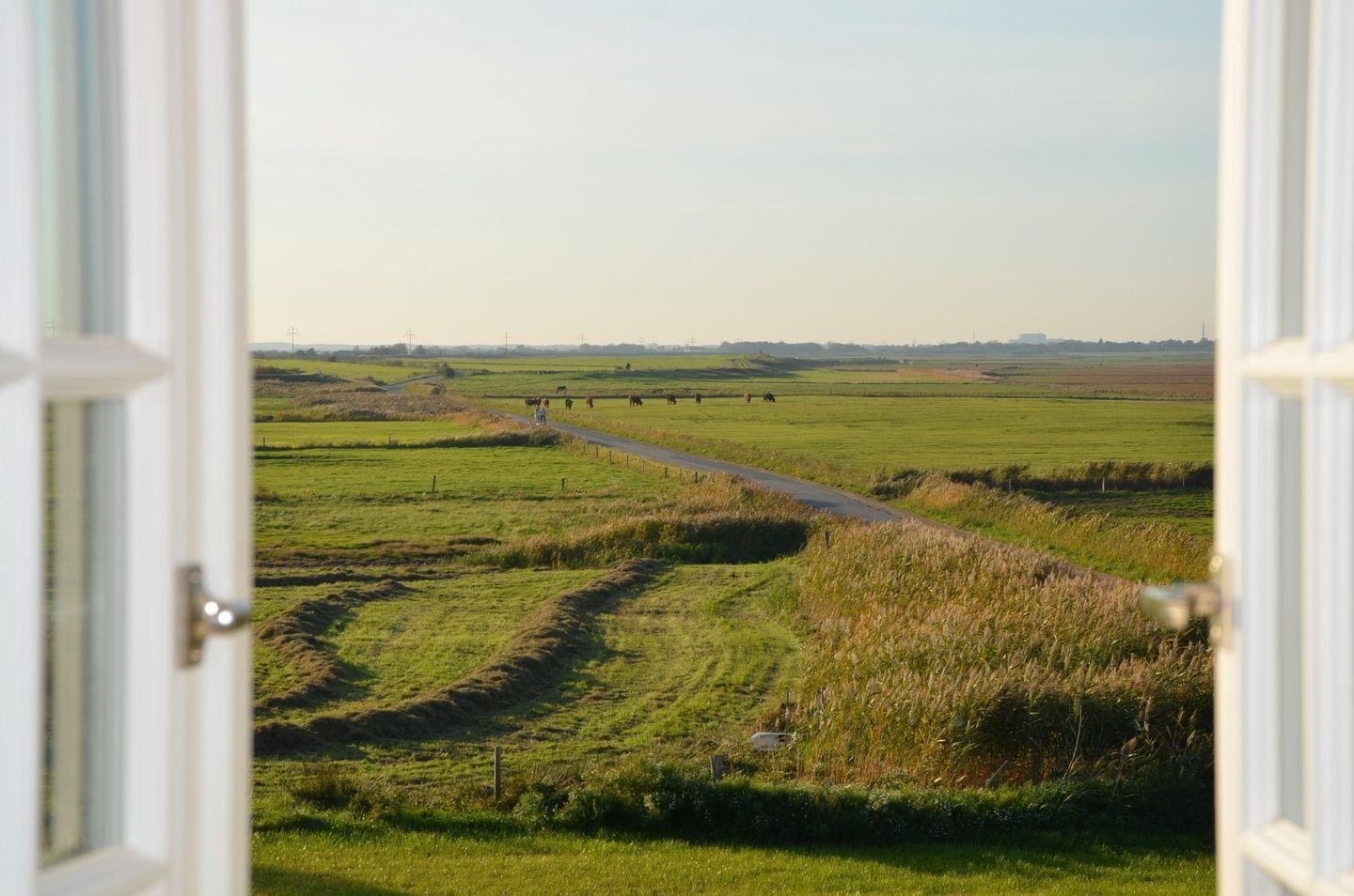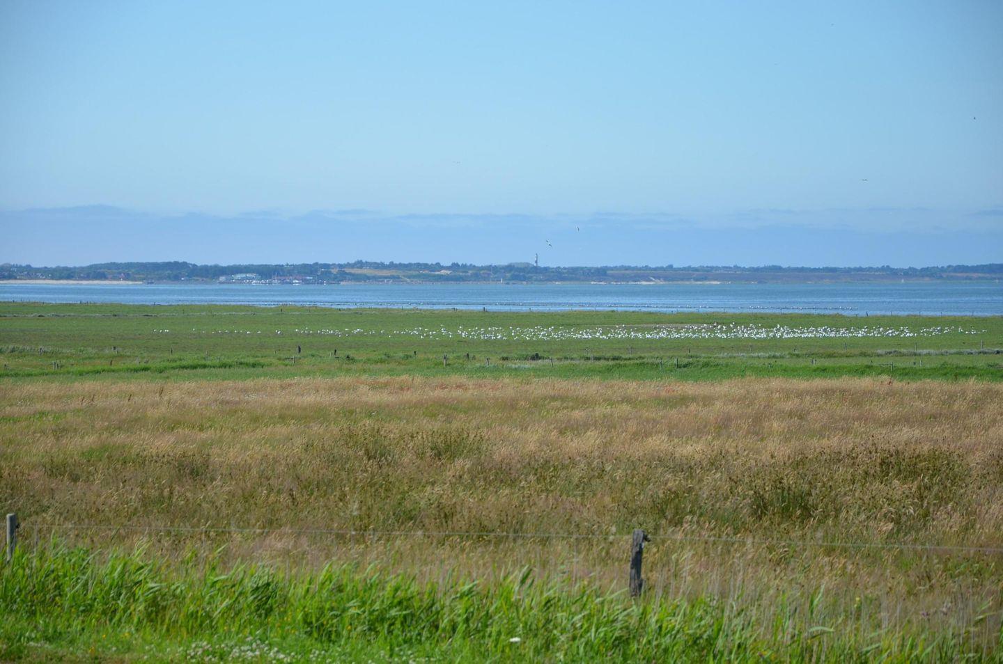 Die 2019 fertiggestellte Doppelhaushälfte "Liiglön" liegt an den Wattwiesen vor Morsum auf Sylt. Frei ist der Blick nach Norden und Westen über das Vogelschutzgebiet hinaus auf das Wattenmeer.