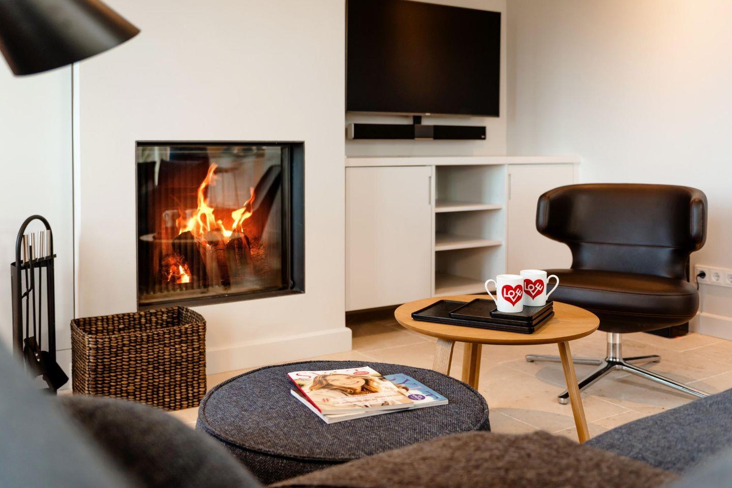 Modernes Hausteil unter Reet mit freiem Blick auf das Wattenmeer, Sauna und Kamin für entspannte Stunden auf Sylt.