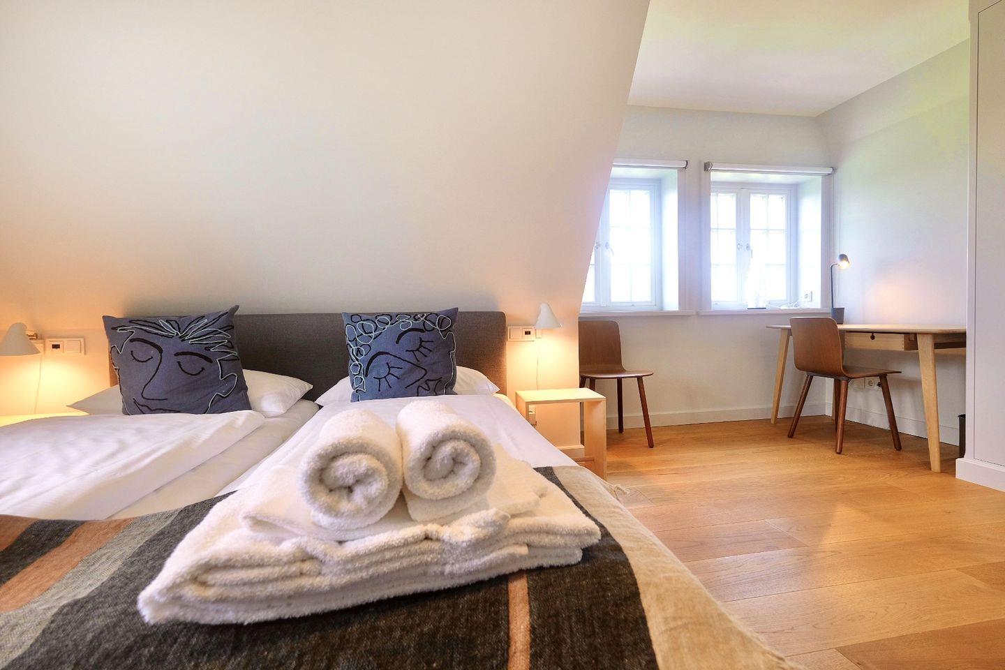 Neubau unter Reet mit freiem Blick aufs Wasser. Großzügig geschnittene Räume, hochwertige Tischlereinbauten und Möbel, ein heller und freundlicher Naturstein aus Frankreich, auf Sylt von Hand nachbearbeitet und antike Fliesen laden zu jeder Jahreszeit zum Entspannen und Träumen ein.