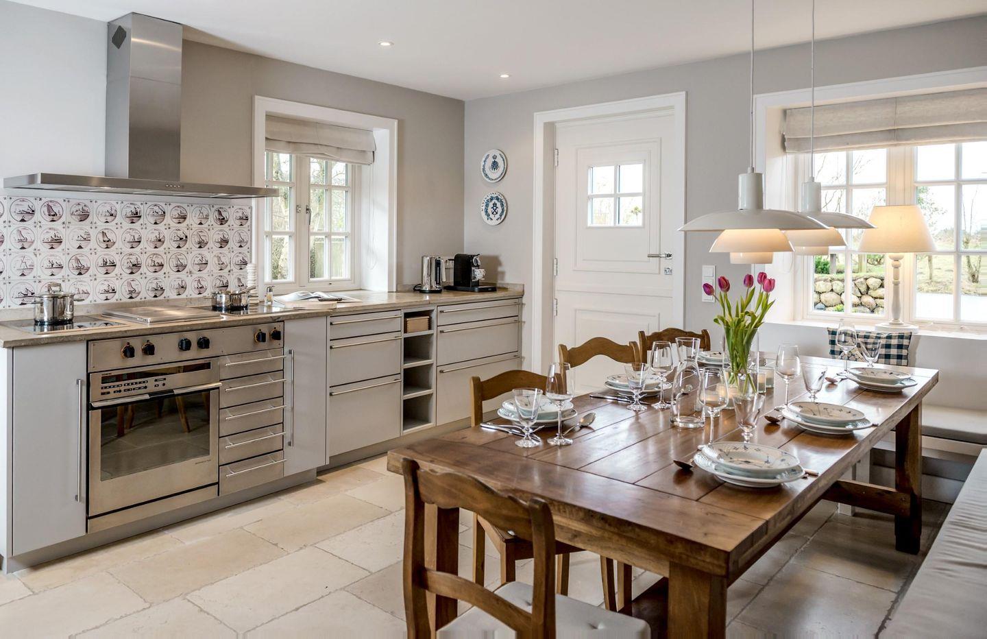 Gemütliche Doppelhaushälfte unter Reet in Morsum, nahe Wattenmeer, vereint modernes Design mit friesischer Tradition.