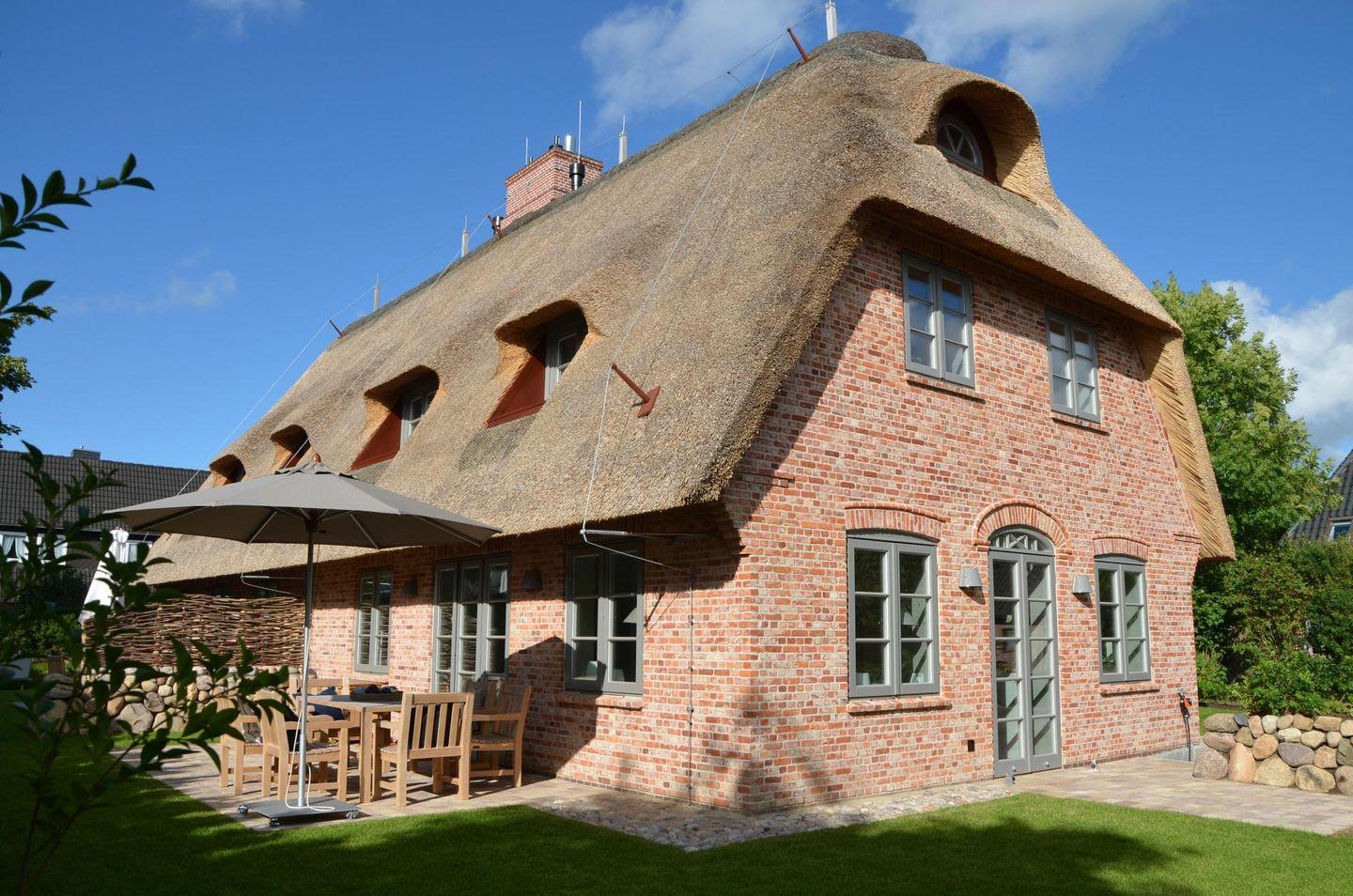 Stilvolle Reetdachdoppelhaushälfte in Morsum mit Premium-Ausstattung und Kamin für einen entspannten Sylt-Urlaub.