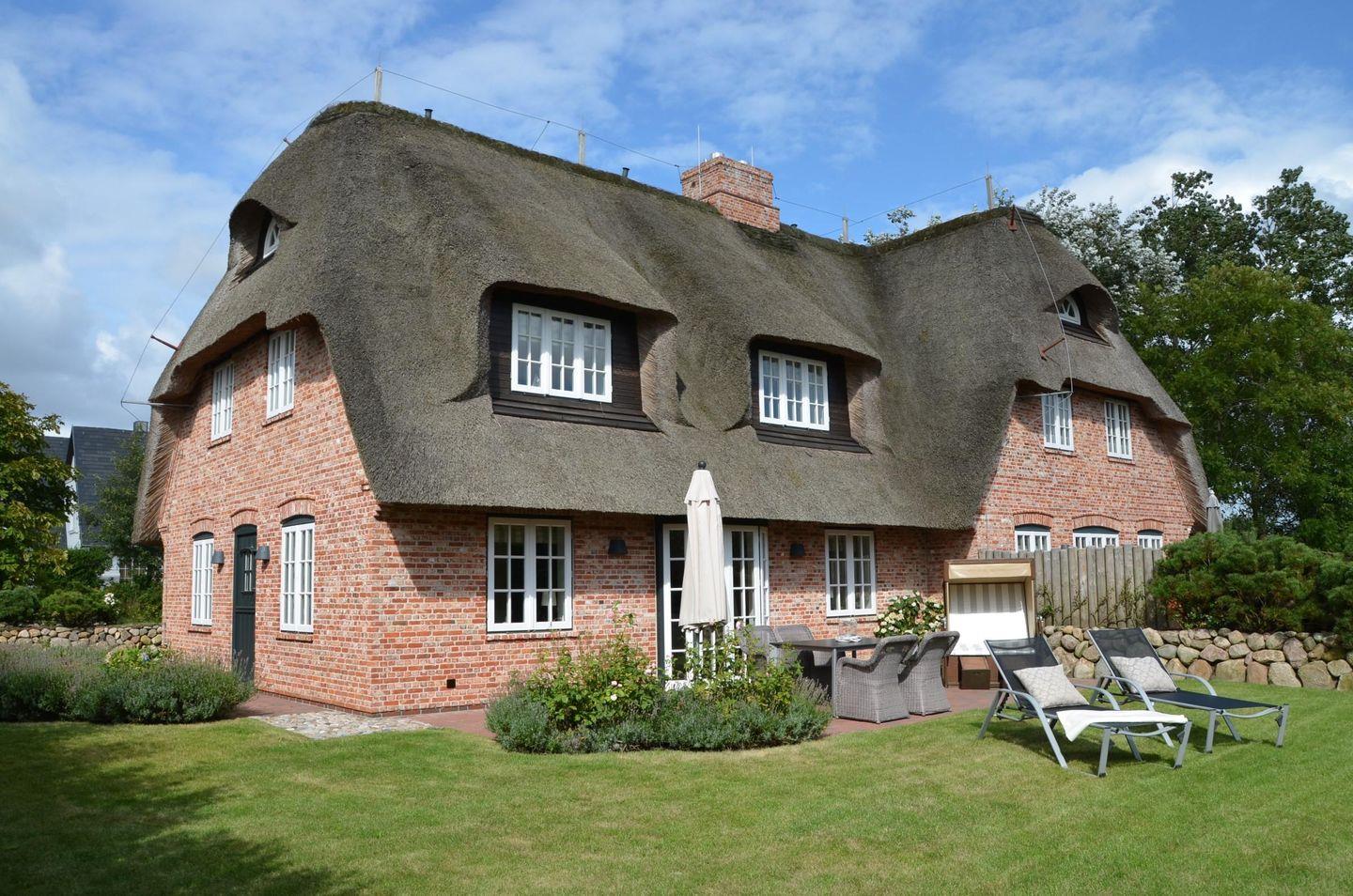 Gemütliche Reetdach-Doppelhaushälfte Austernfischer in Morsum mit Sauna, Kamin und Garten, nahe Naturschutzgebiet und Golfplatz.