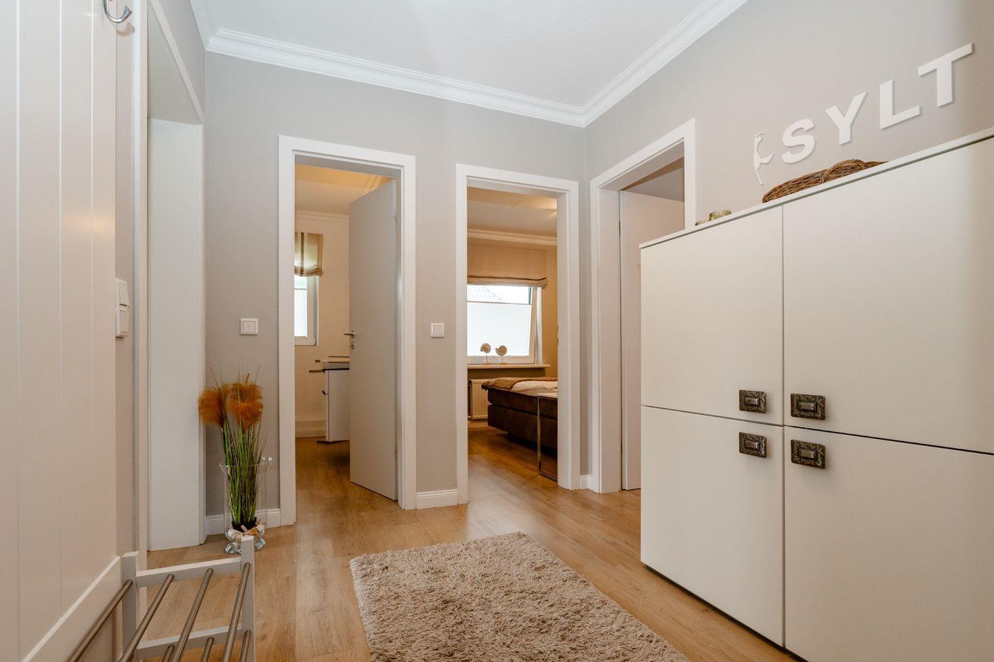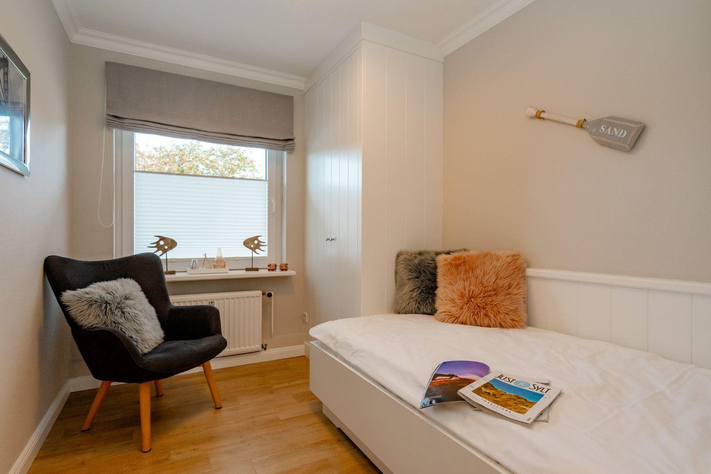 Helle und moderne Ferienwohnung auf einer Ebene mit zwei Schlafzimmern für maximal zwei Personen. Südlich ausgerichtete Terrasse mit Strandkorb. Ein Herzstück in Morsum mit Supermarkt und Bäcker ganz in der Nähe!