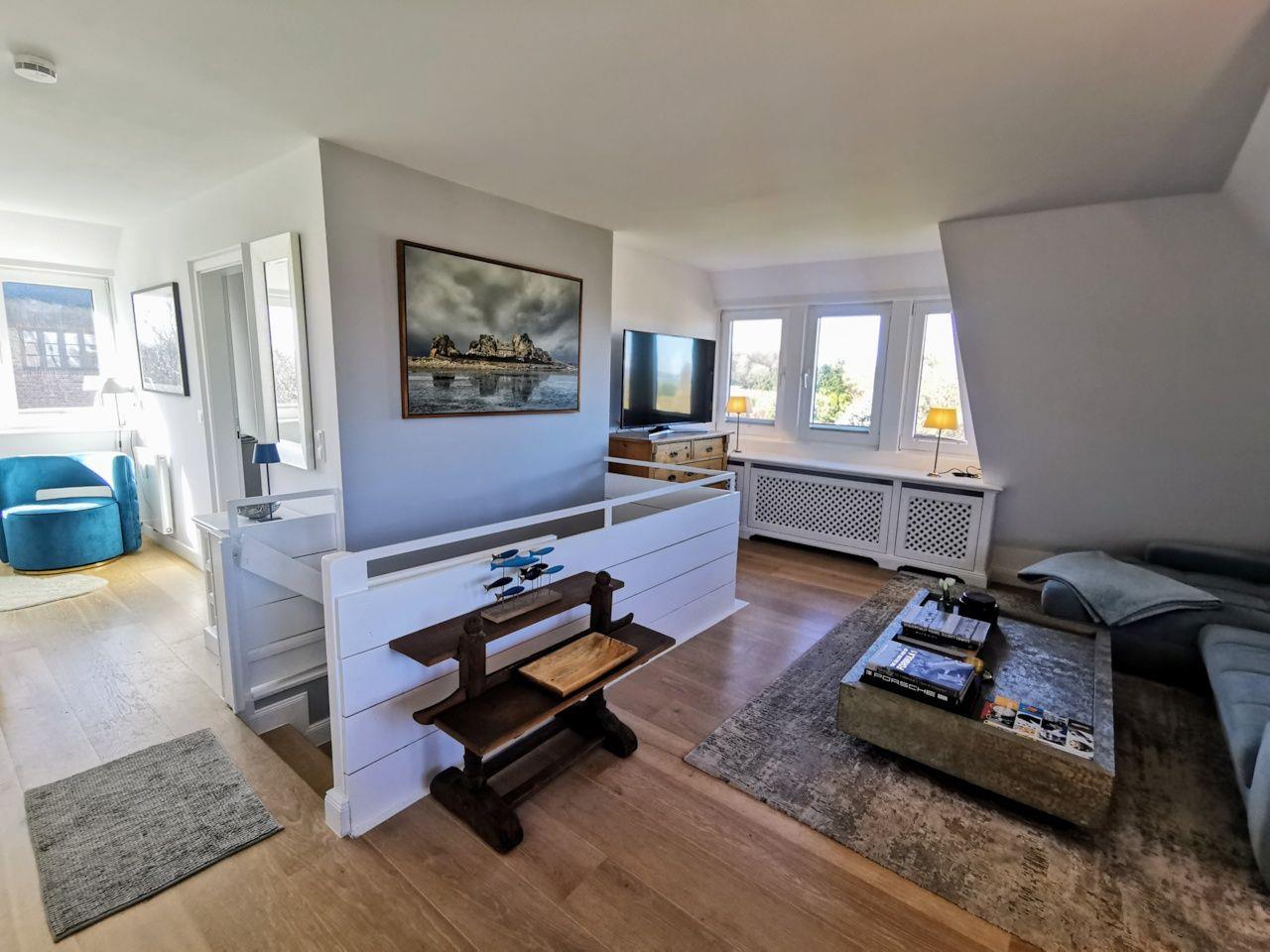 Urlaub ganz nah am Meer - dieses Gefühl erleben Sie in dieser gemütlichen OG-Wohnung unter Reet. Die helle und sonnige Wohnung überzeugt mit ihrer luftigen Aufteilung und einem fantastischen Ausblick!