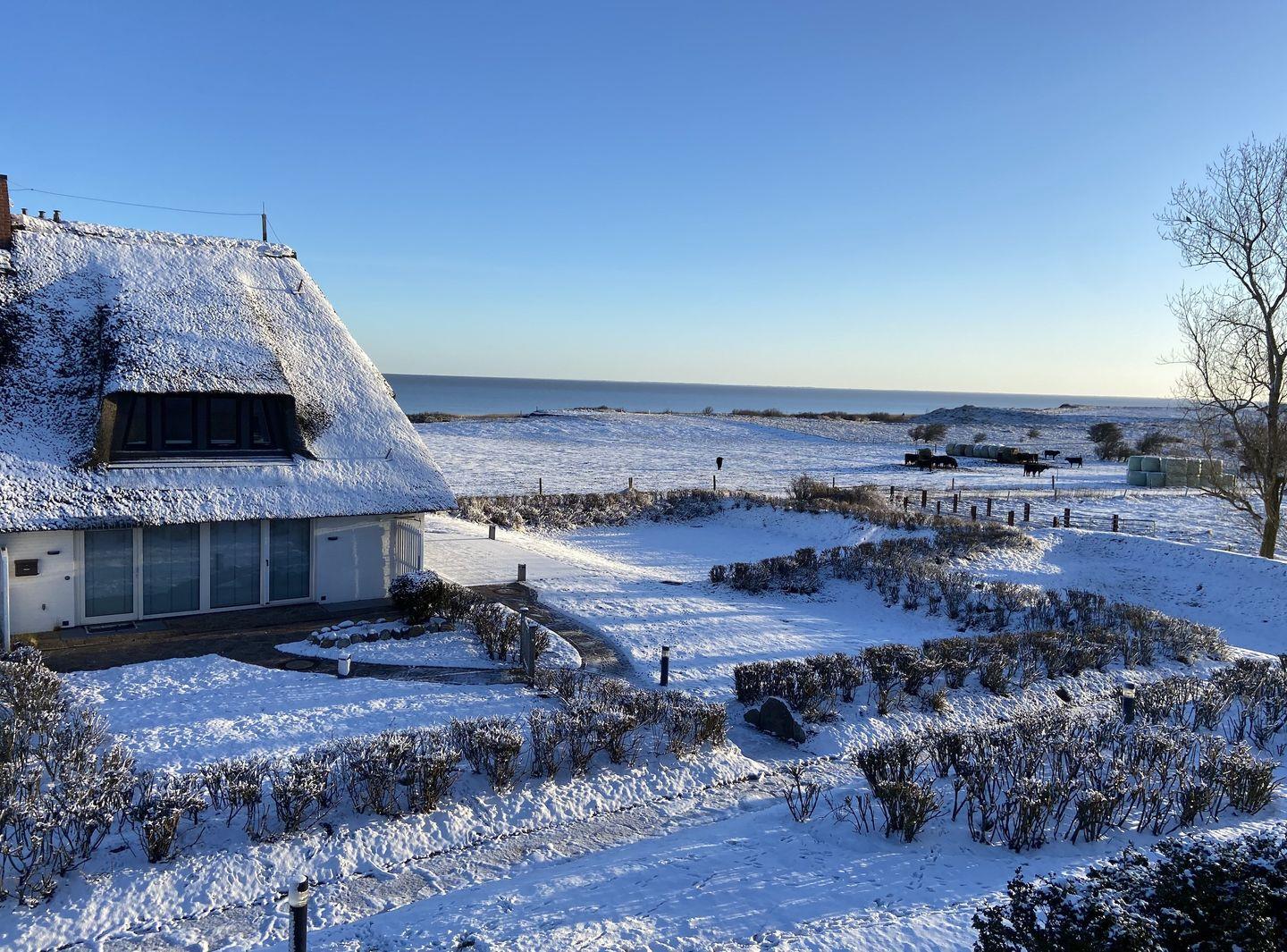 Gemütliche Wohnung unter Reet mit Meerblick und Terrasse nahe dem Wattenmeer auf Sylt.