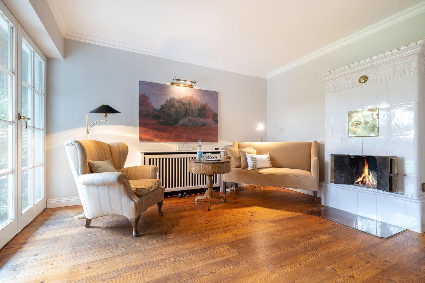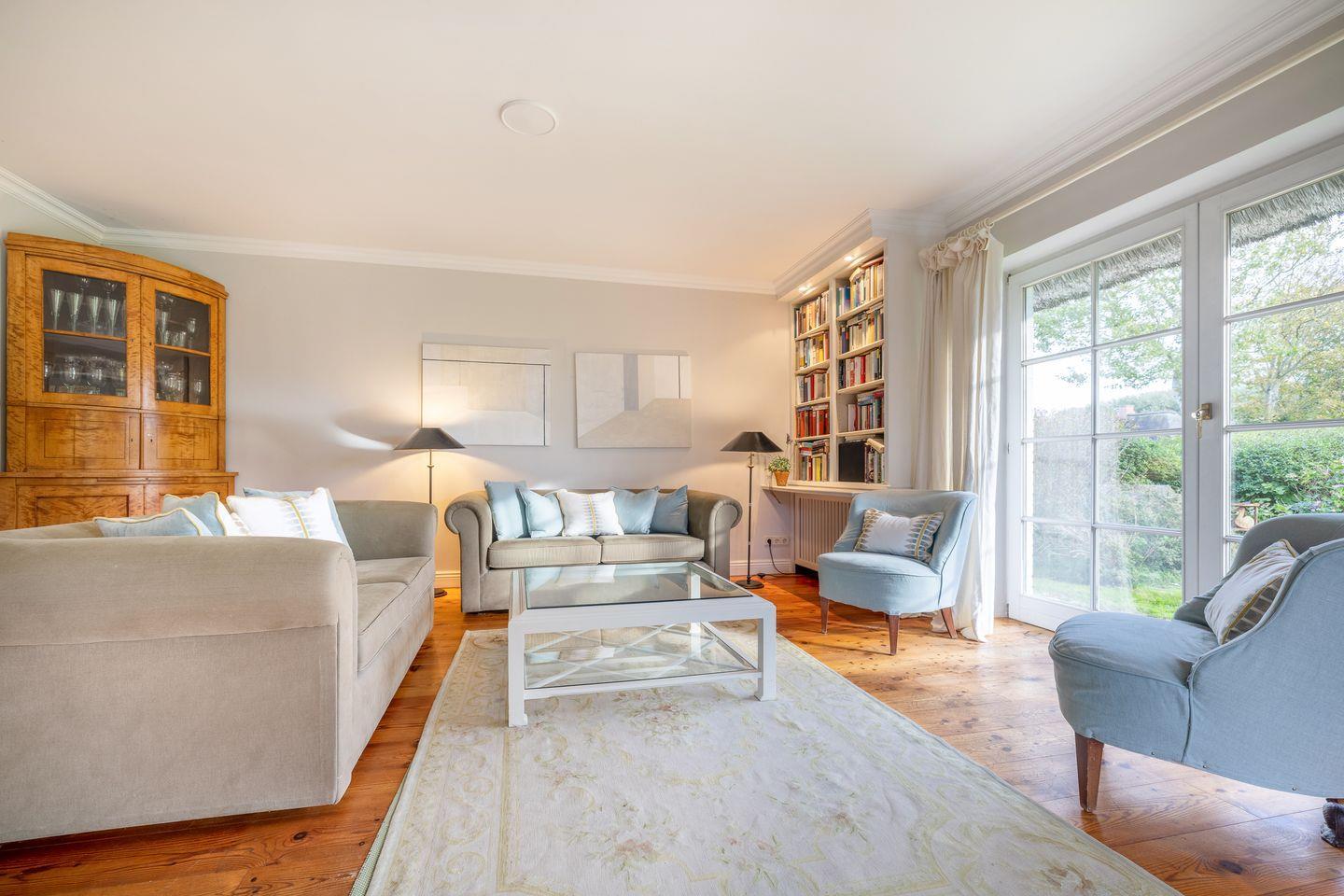 Sie haben durch den raffinierten Grundriss genügend Rückzugsmöglichkeiten, so dass Sie auch in Ruhe ein Buch aus Ihrer eigenen Bibliothek lesen und dabei den Blick aus allen Zimmern in den von bepflanzten Friesenwällen umgebenen Garten des freistehenden Hauses genießen können. Der von der ruhigen Straße aus uneinsehbare Garten mit großem Rasen, mächtigen Hortensien, gepflegten Kletterrosen und altem Baumbestand steht Ihnen allein zur exklusiven Nutzung zur Verfügung. Vier Sonnenliegen sind neben diversem Teakholzmobiliar auf den beiden Terrassen vorhanden.