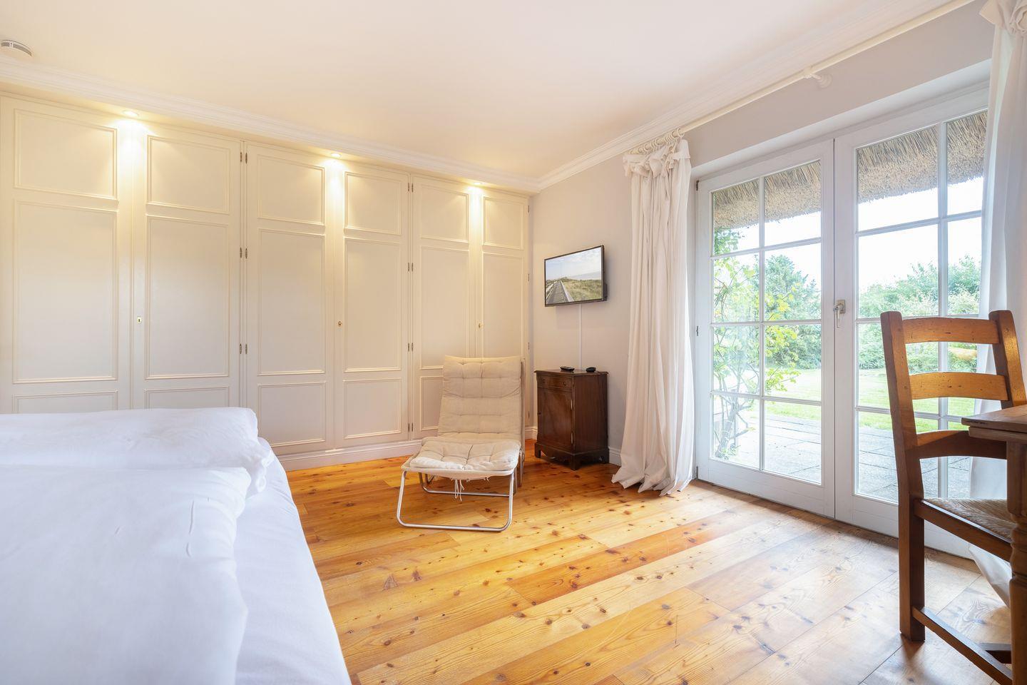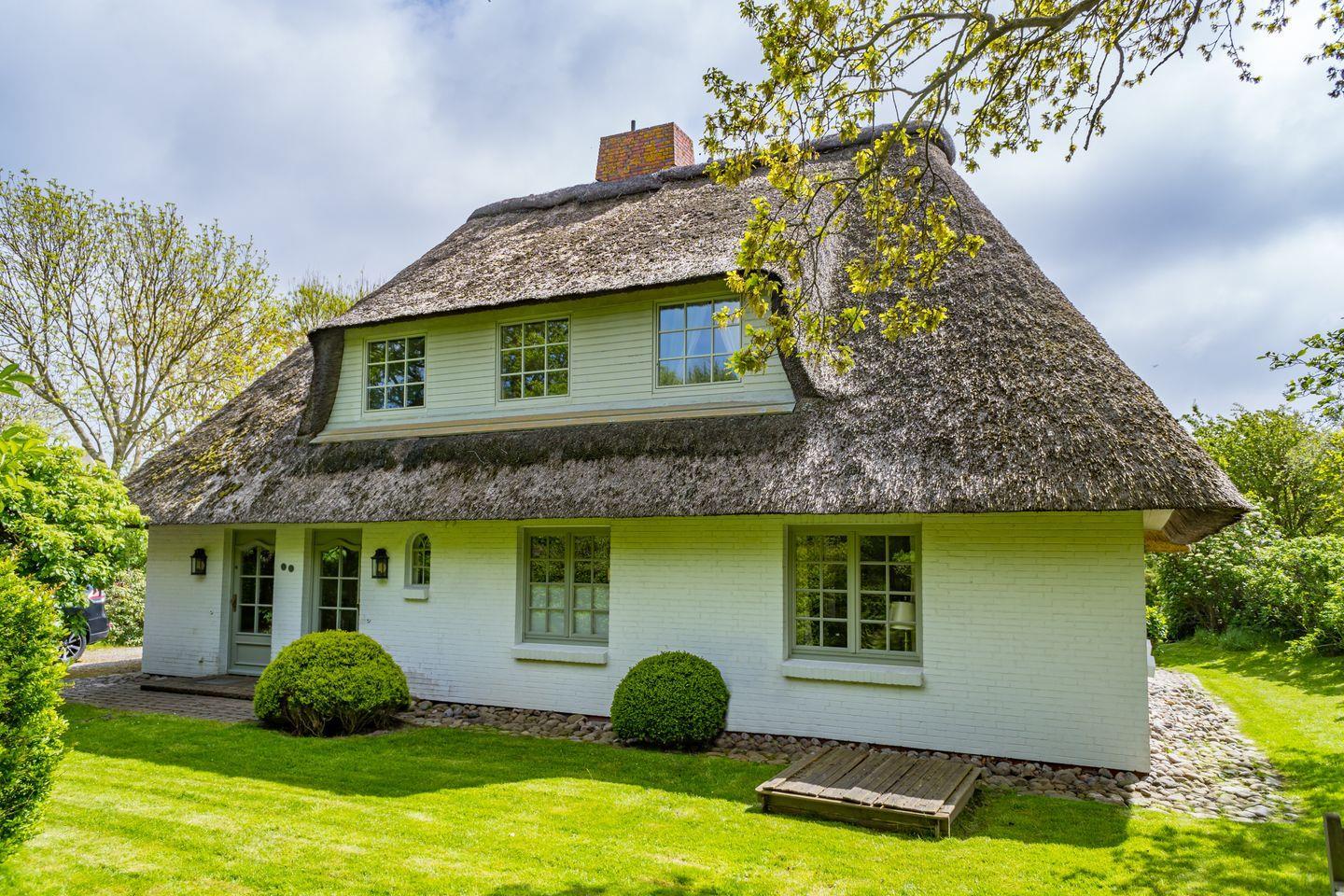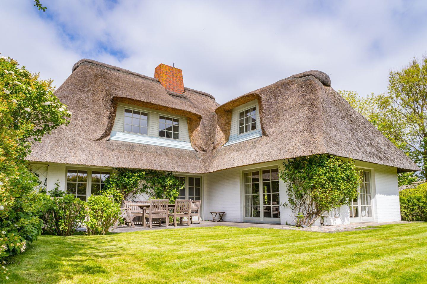 Großzügiges Hausteil unter Reet auf Sylt mit Sauna, großem Garten und modernem Wellnessbereich für erholsame Ferien.