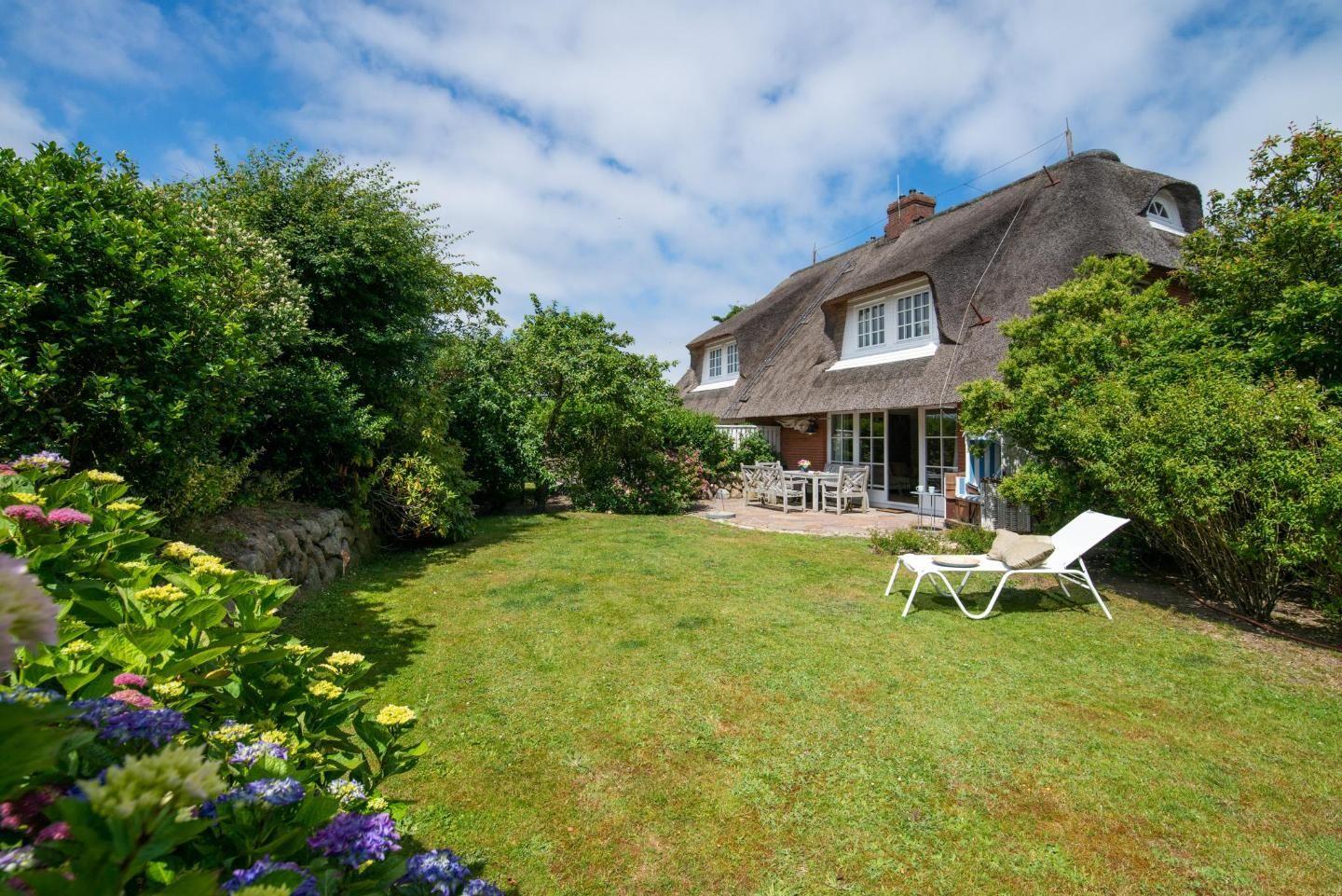 Typisches Friesenhaus unter Reet mit Terrasse, Garten und nur 280 m zum Meer in Keitum auf Sylt.