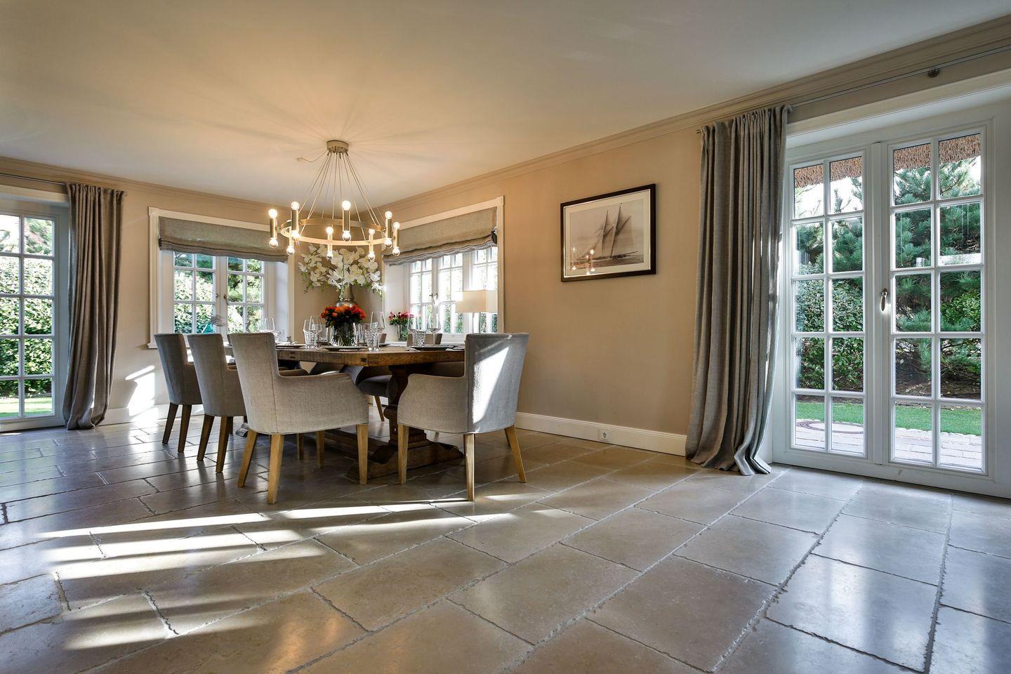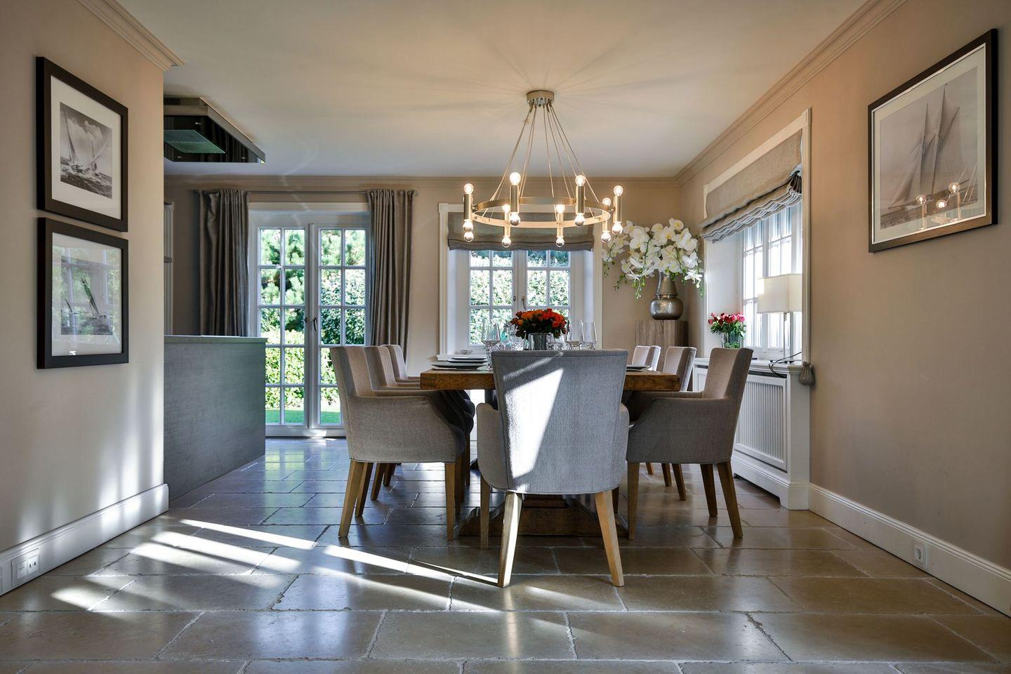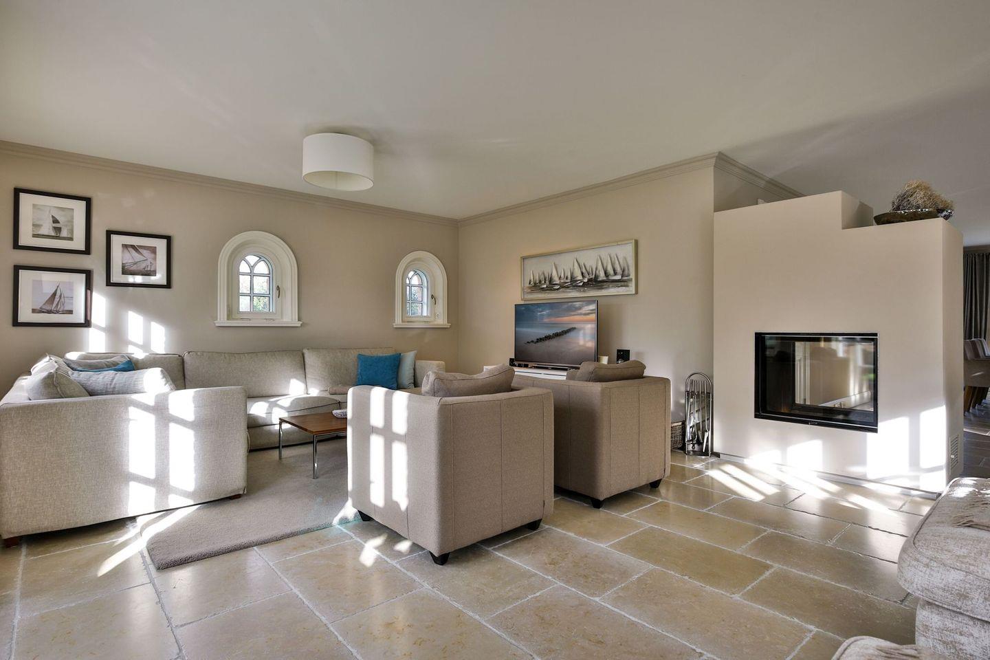Wohn-/Essbereich: Essbereich mit großem Tisch mit 8 Stühlen für die ganze Familie, geräumiger Wohnbereich mit großer Eckcouch und zwei Sesseln, sowie zwei Recamiere, doppelseitigen dekorativer Kamin