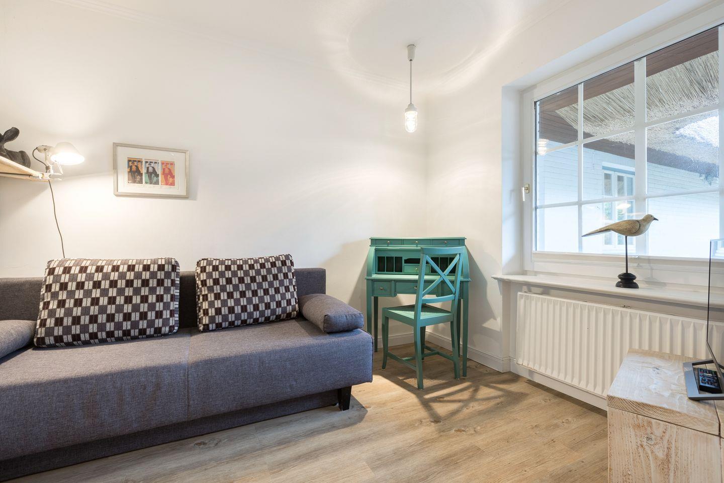 Schlafen 1: kleiner Schlafraum mit Schlafcouch (140 x 200 cm) und Flat-TV