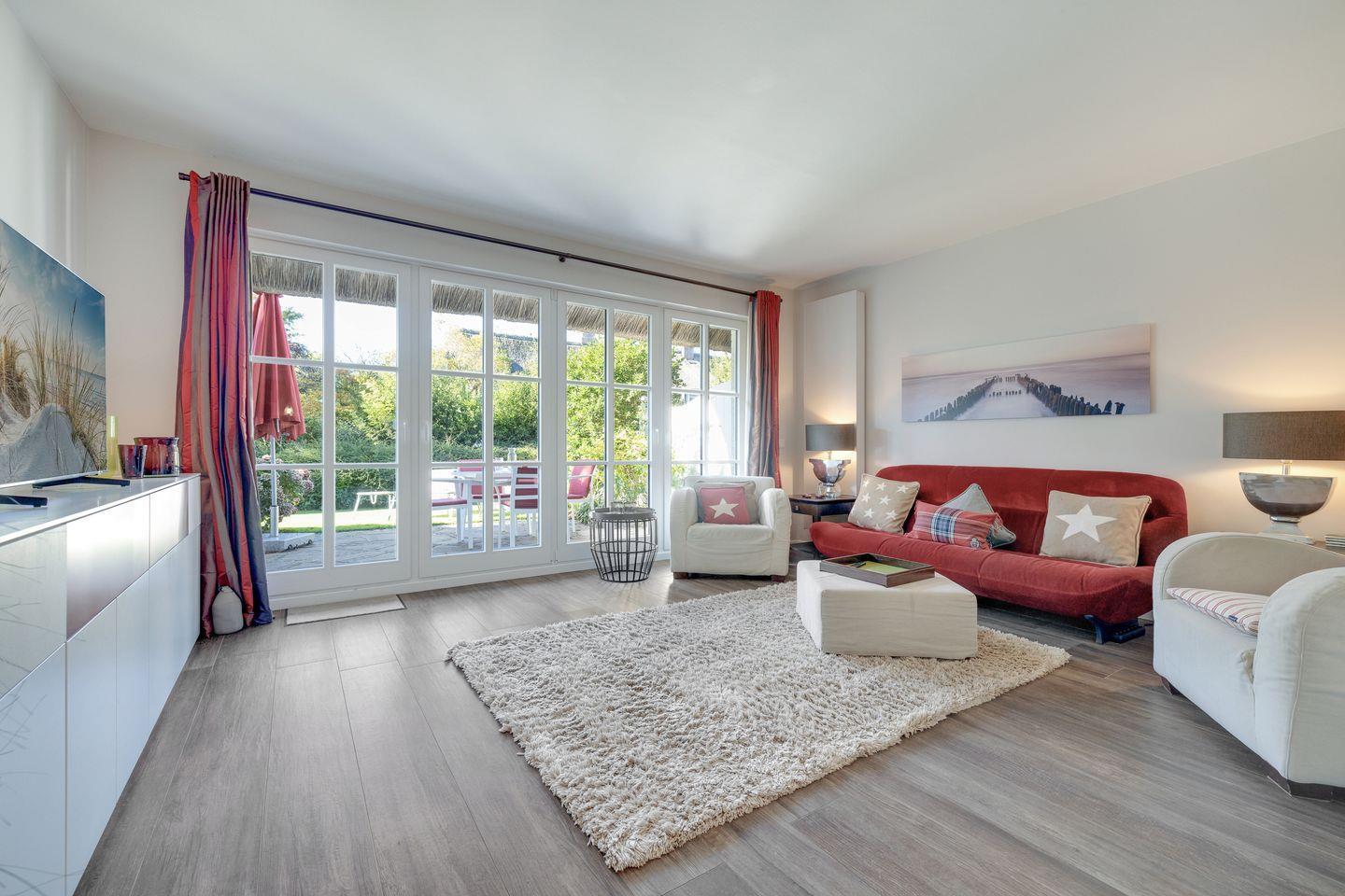 Das reetgedeckte Haus liegt ruhig am Anfang einer Sackgasse im Südosten von Keitum. Das gesamte Erdgeschoss verfügt über Fußbodenheizung und einen schönen Dielenboden. Durch farbenfrohe Akzente und die sehr stilvolle und moderne Einrichtung entsteht eine Wohlfühlatmosphäre. Das Haus verfügt über Komfort wie Flat TV mit HD-Auflösung, DVD-Player, iPod Station, W-LAN, Induktionsherd, Nespressomaschine (ohne Kapseln), Geschirrspüler und Waschmaschine. Selbstverständlich gehört ebenso ein Pkw-Stellplatz zum Objekt.
