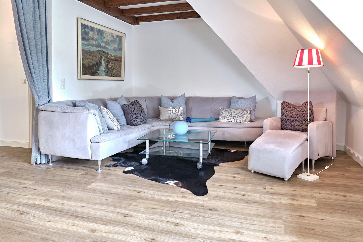 Die reetgedeckte, sehr gepflegte Anlage liegt auf einem ca. 2000 m² großem Grundstück an einer ruhigen Seitenstraße nahe dem Benen-Diken-Hof. Die Wohnung im Ober und Dachgeschoss ist gemütlich eingerichtet und hat für 4 Personen Platz.