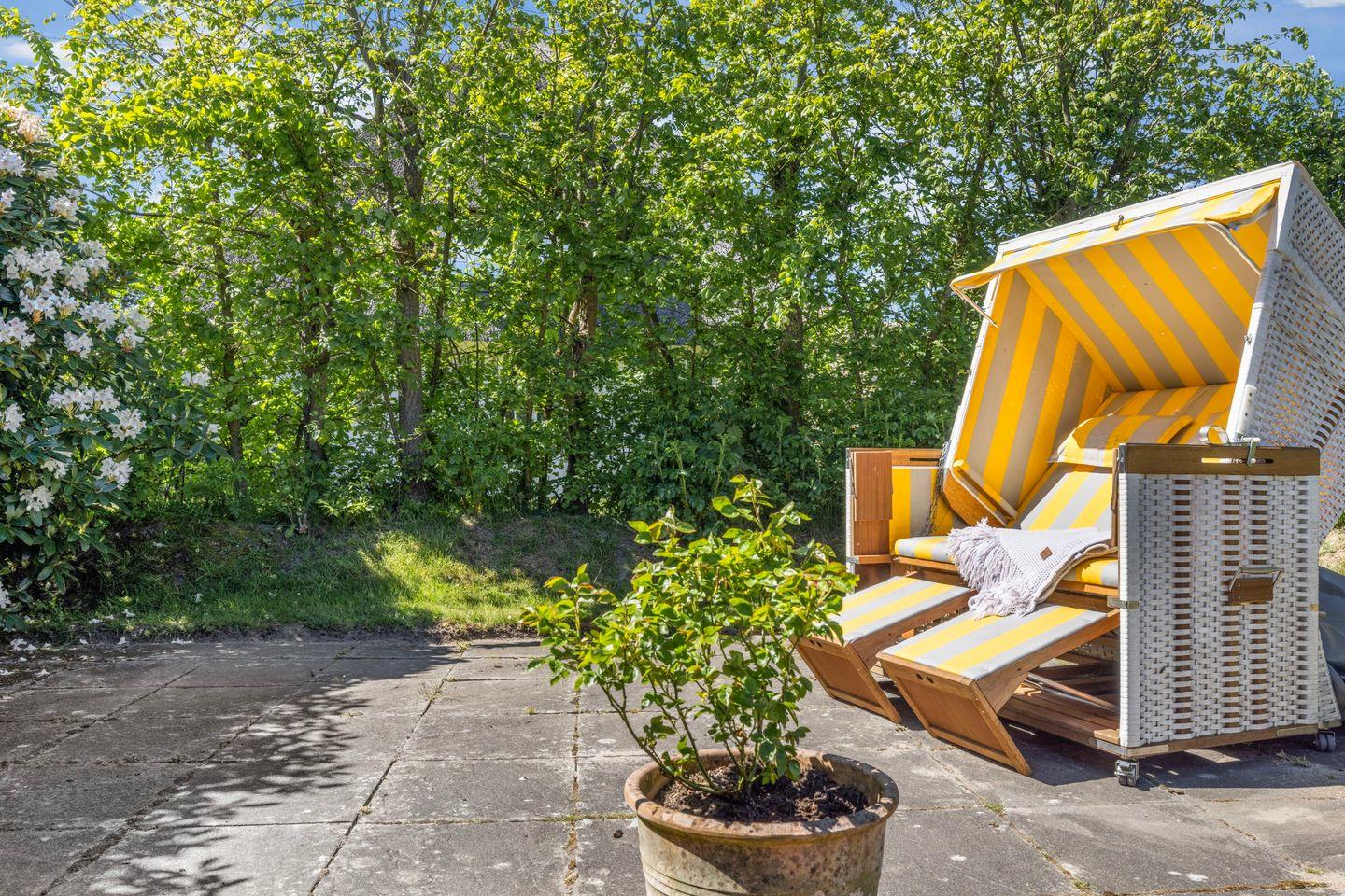 Sie bietet Komfort wie Flat-TV, Backofen, Geschirrspüler und Pkw-Stellplatz. Es steht Ihnen eine Sonnenkuhle mit Strandkorb zur Verfügung ( von ca. April bis Oktober )