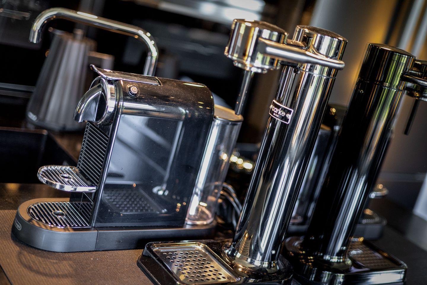 Küche: offene Küche im Wohnbereich mit Geschirrspüler, Induktionsherd, Backofen, großem Kühlschrank, Nespresso Kaffeemaschine etc.